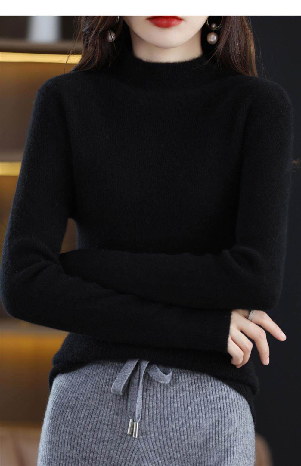 Шерстяной базовый приятный телу приталенный демисезонный свитер, термобелье, лонгслив, высокий воротник