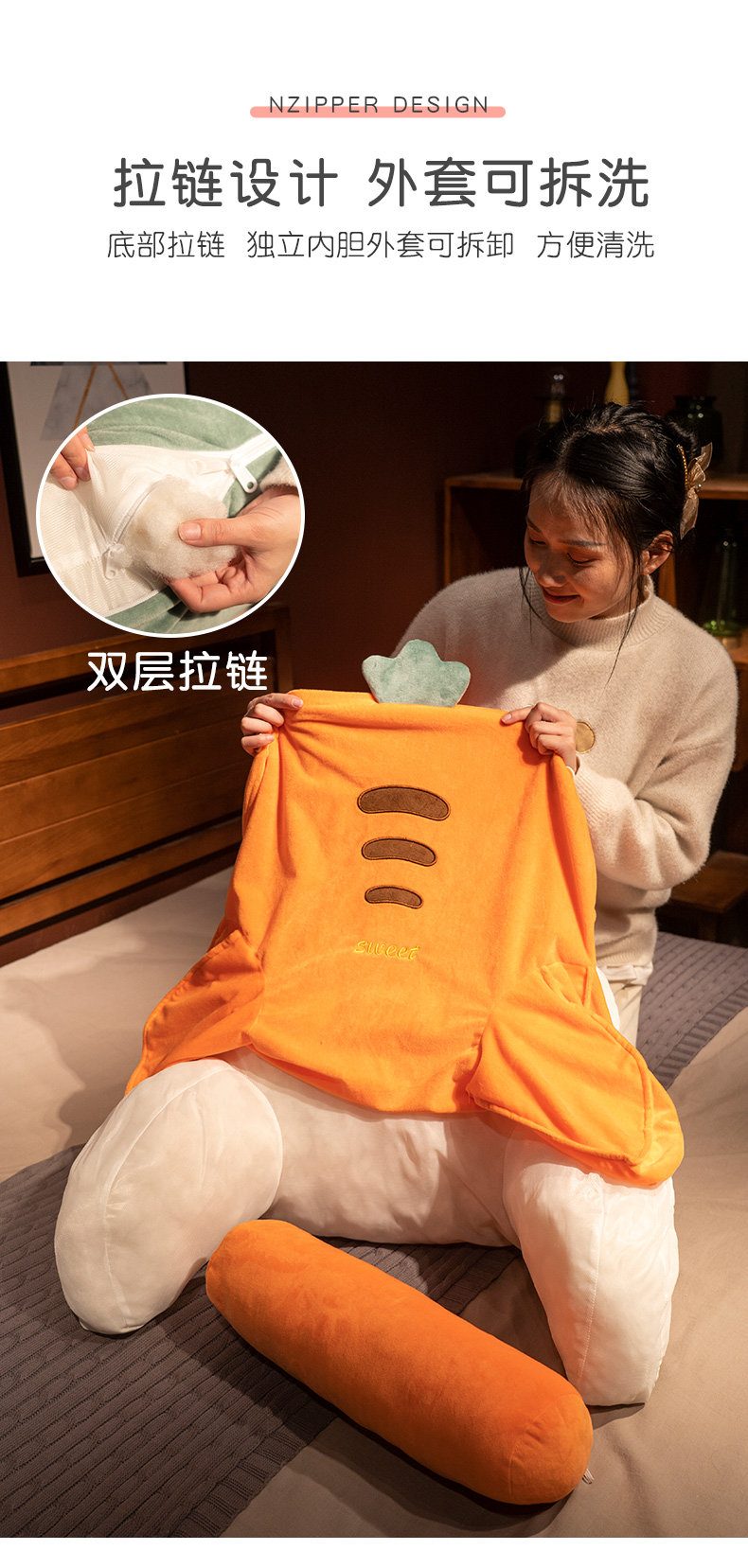 - Большая подушка+подушка головки [рекомендованная прикроватным] [70 × 40 × 25 см. Независимый внутренний фонд может быть разобран и вымыт]