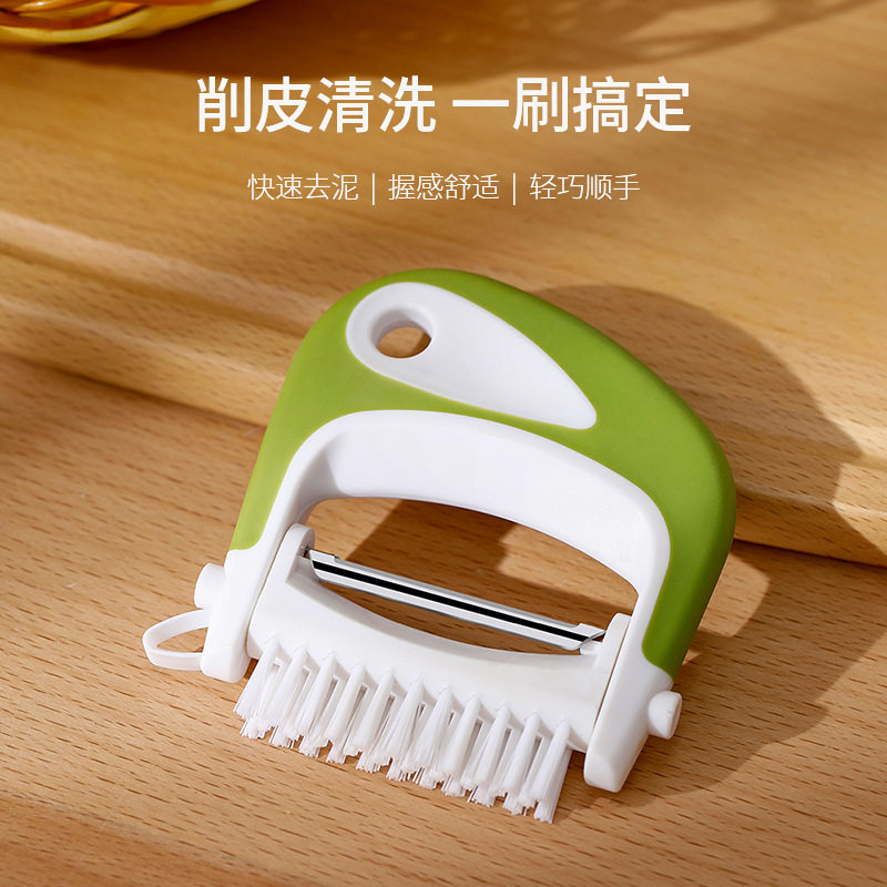 Многофункциональная кухонная ручная овощечистка, трехцелевой вращающийся нож для очистки дыни, щетка для очистки фруктов и овощей из нержавеющей стали