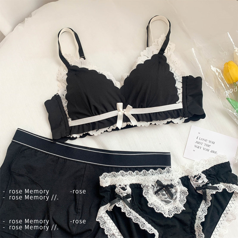Нижнее белье, комбинезон, комплект, комфортный дышащий бюстгальтер без косточек, подростковый бюстгальтер, стиль Лолита, для влюбленных, 3 предмета
