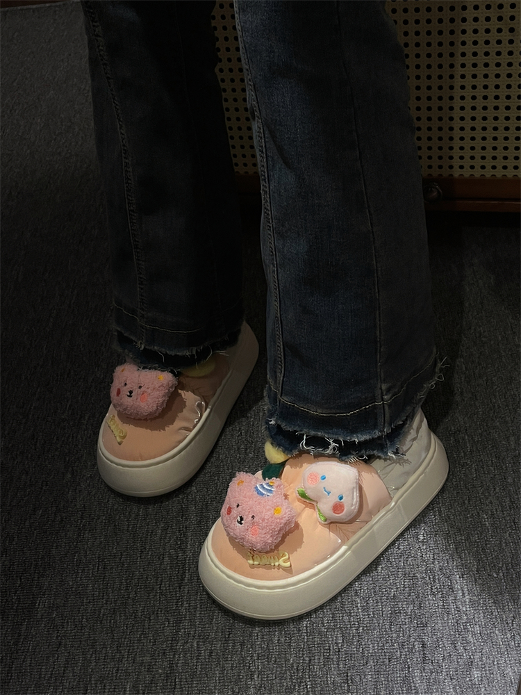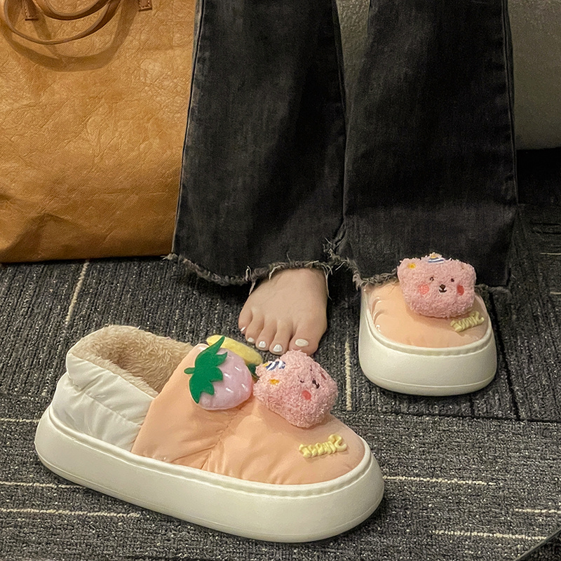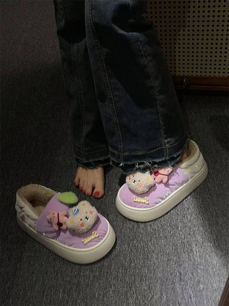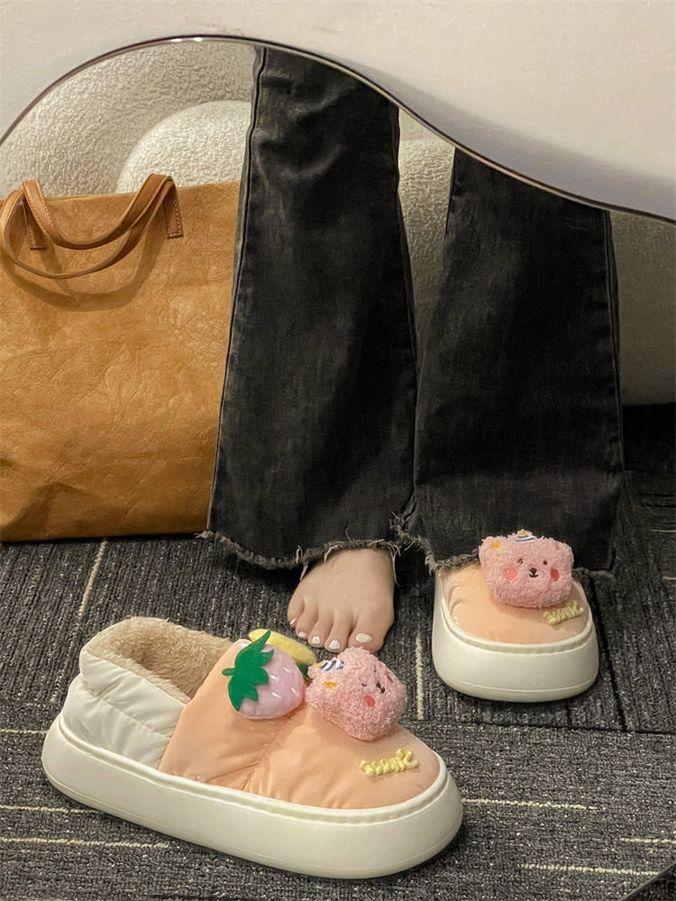 Утепленная обувь, нескользящие милые тапочки на платформе, туфли, коллекция 2022