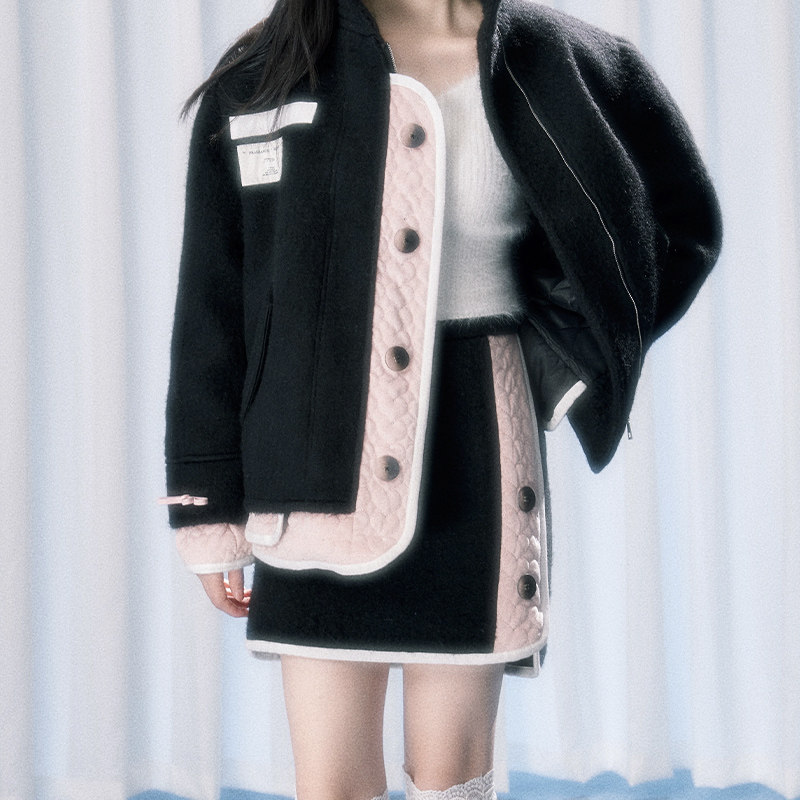 Розовая шерстяная утепленная куртка, пуховик, юбка, комплект