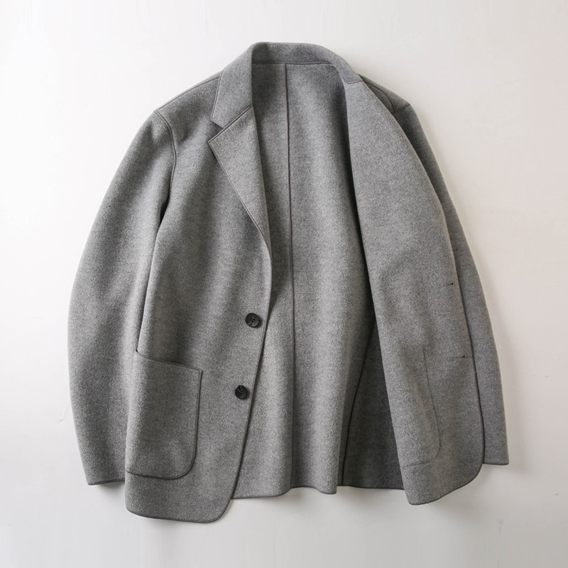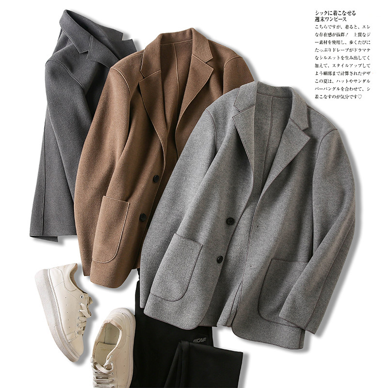 Двусторонная демисезонная куртка, шерстяное шерстяное пальто, костюм, в корейском стиле, облегающий крой