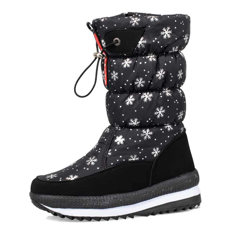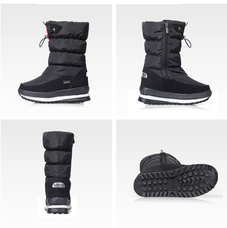Зимние флисовые удерживающие тепло сапоги, черные нескользящие ботинки, средней длины