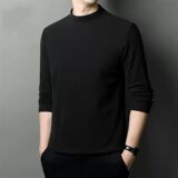 Бархатный базовый приятный телу лонгслив для отдыха, комфортная приятная телу футболка, модное термобелье, высокий воротник, осенний