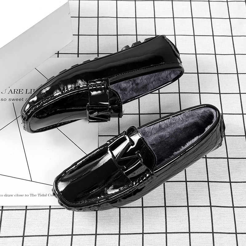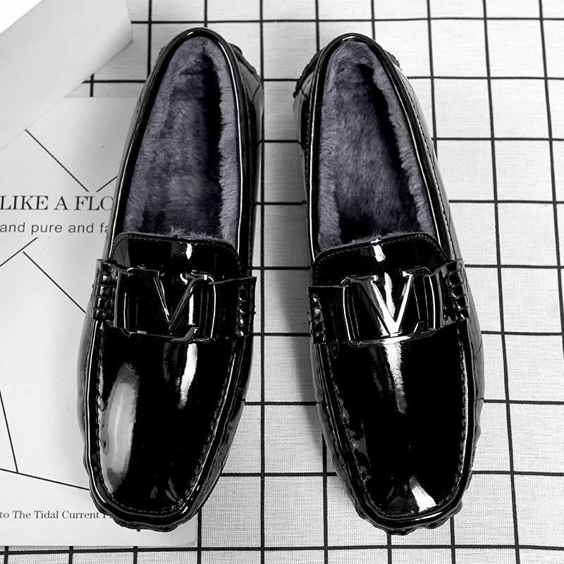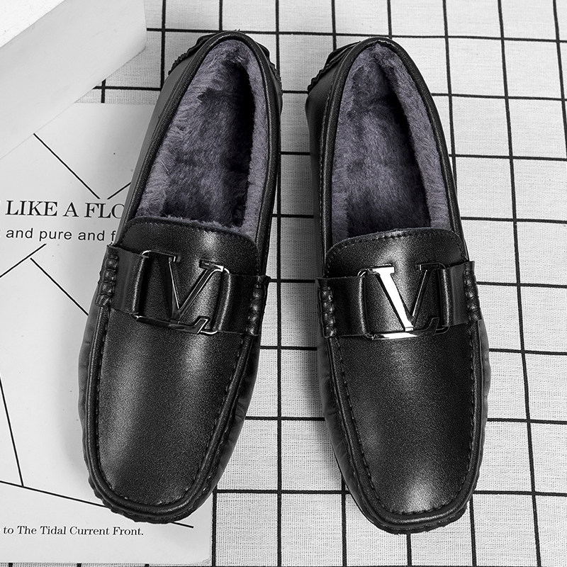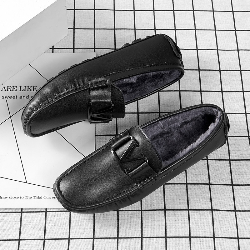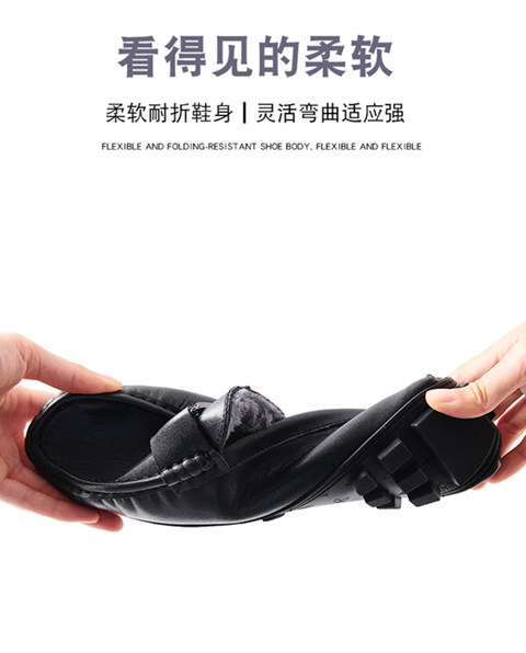 Зима плюс бархатная теплая бобовая обувь кожая мужская мягкая кожаная мягкая дно вождение повседневная кожаная обувь