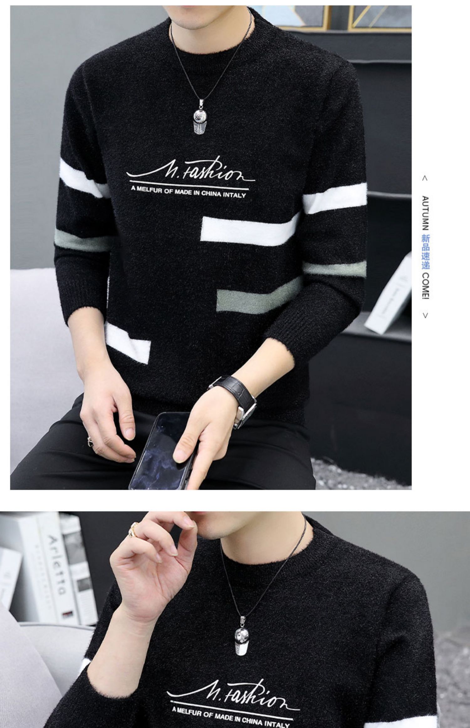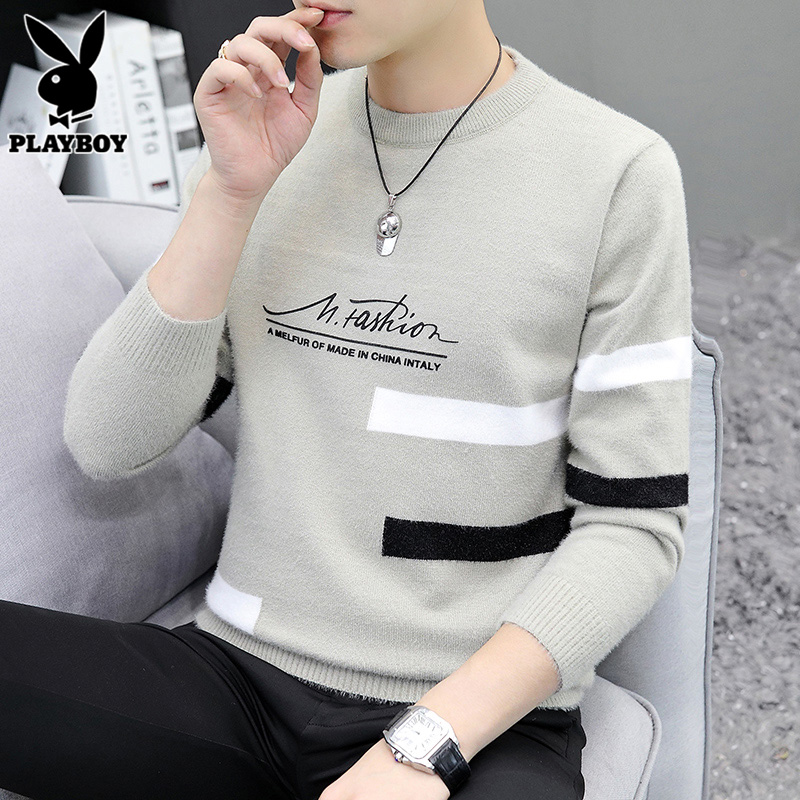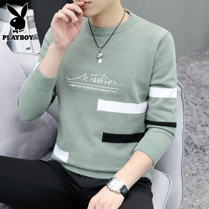 Playboy, мужской демисезонный бархатный свитер, удерживающая тепло трикотажная рубашка, высокий воротник