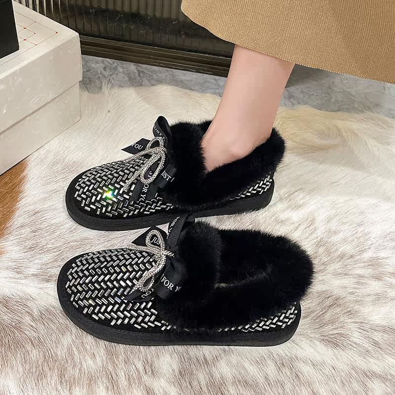 Зимние сетчатые флисовые удерживающие тепло сапоги, 2022, популярно в интернете, инкрустировано бриллиантами, в стиле Шанель