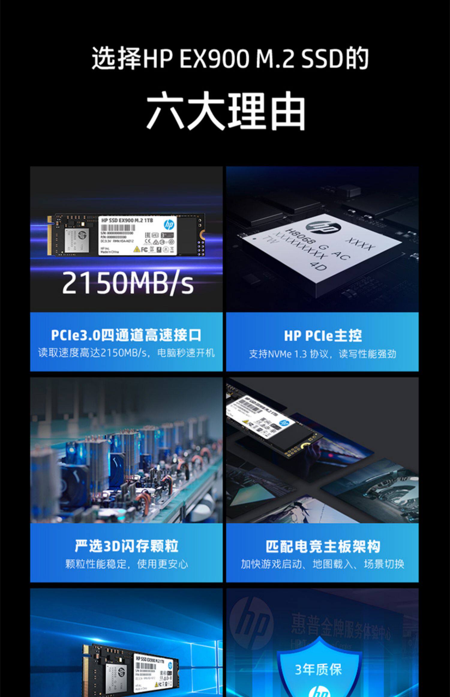 HP HP 1T Solid -state жесткий диск эльф -ноутбук M.2 Интерфейс настольный компьютерный офис домохозяйства -на одном черном диске