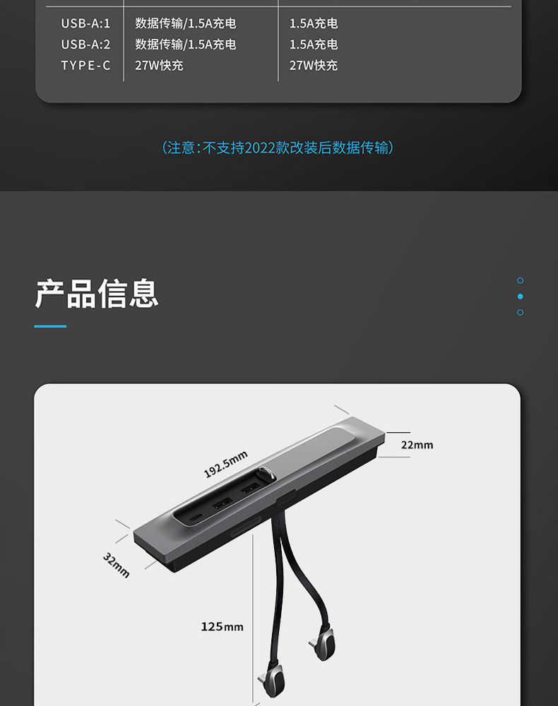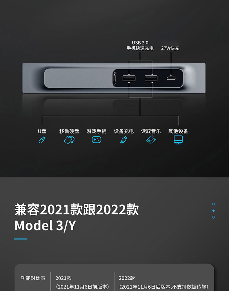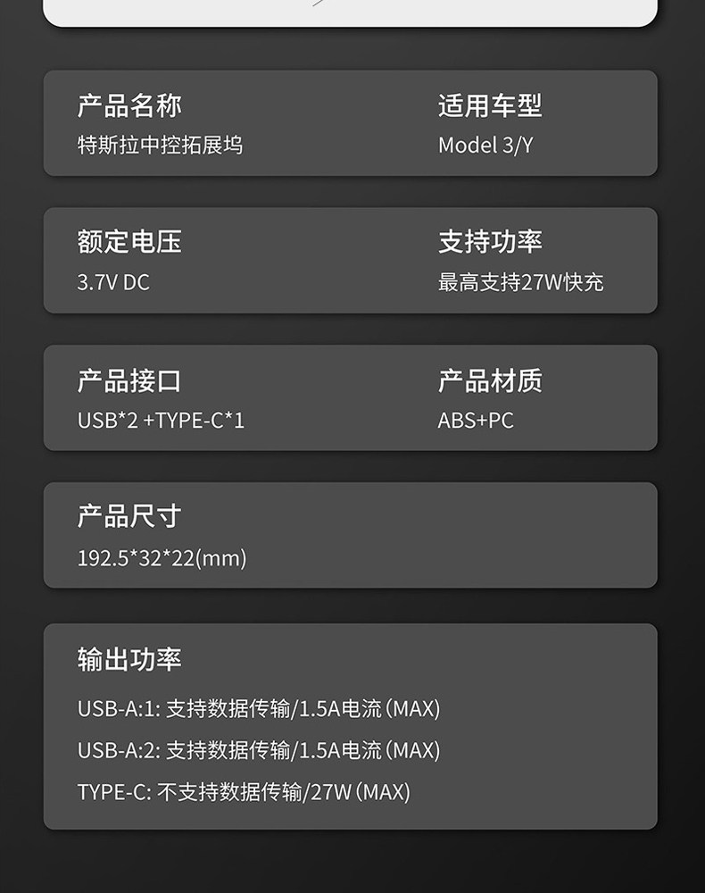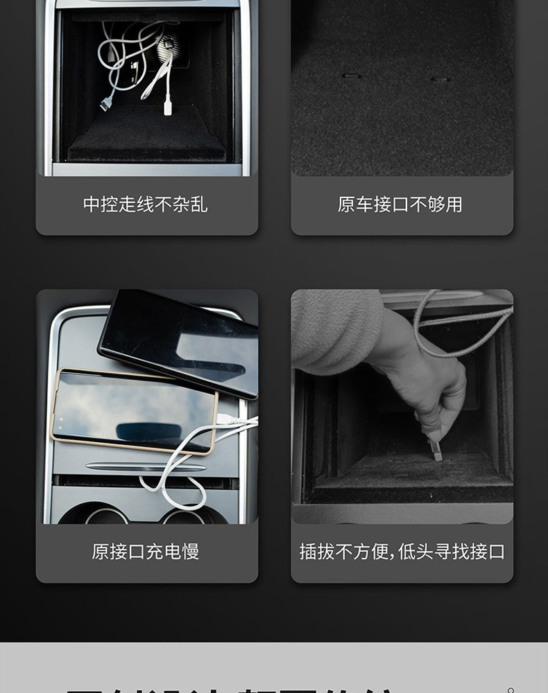 Подходит для док -модели Tesla модели3/Y средний -контрольный концентратор USB -аксессуары USB -зарядки
