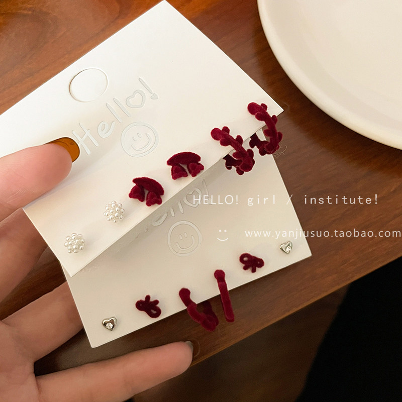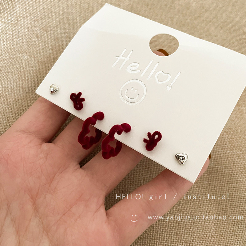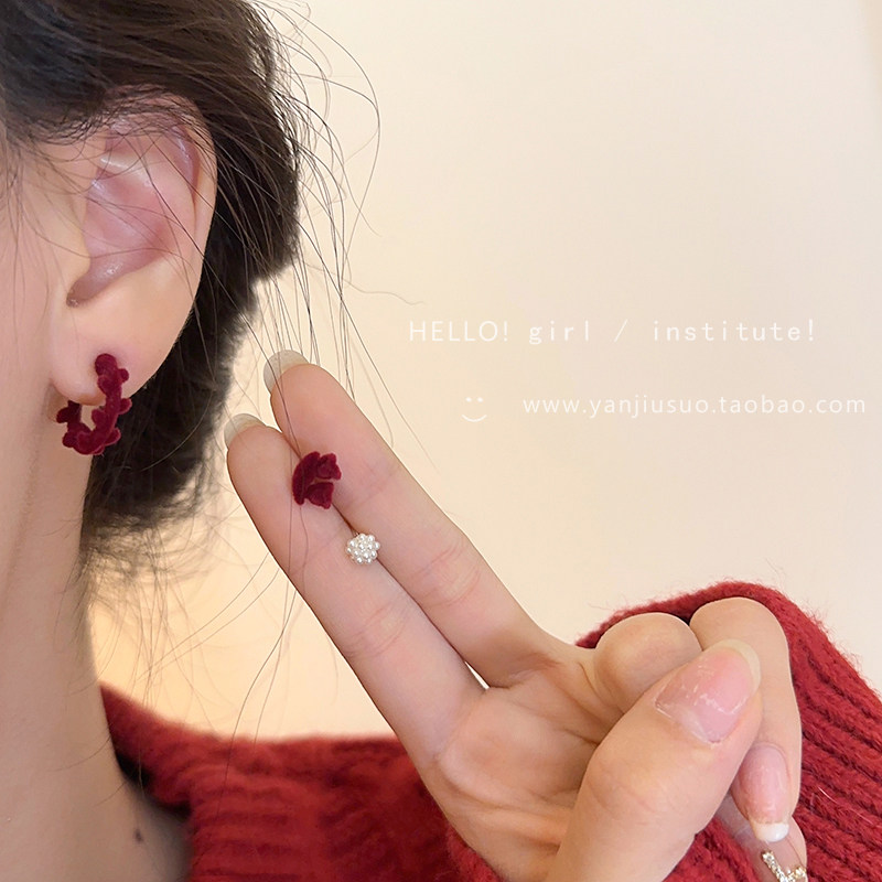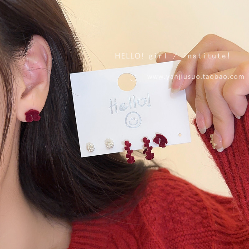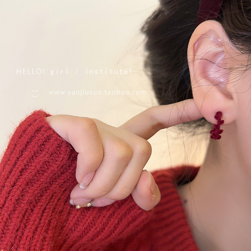 Бордовый комплект с бантиком, демисезонные милые универсальные серьги, коллекция 2022