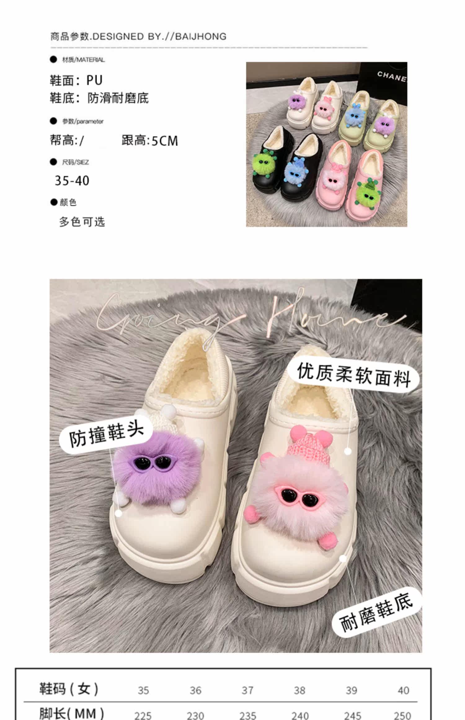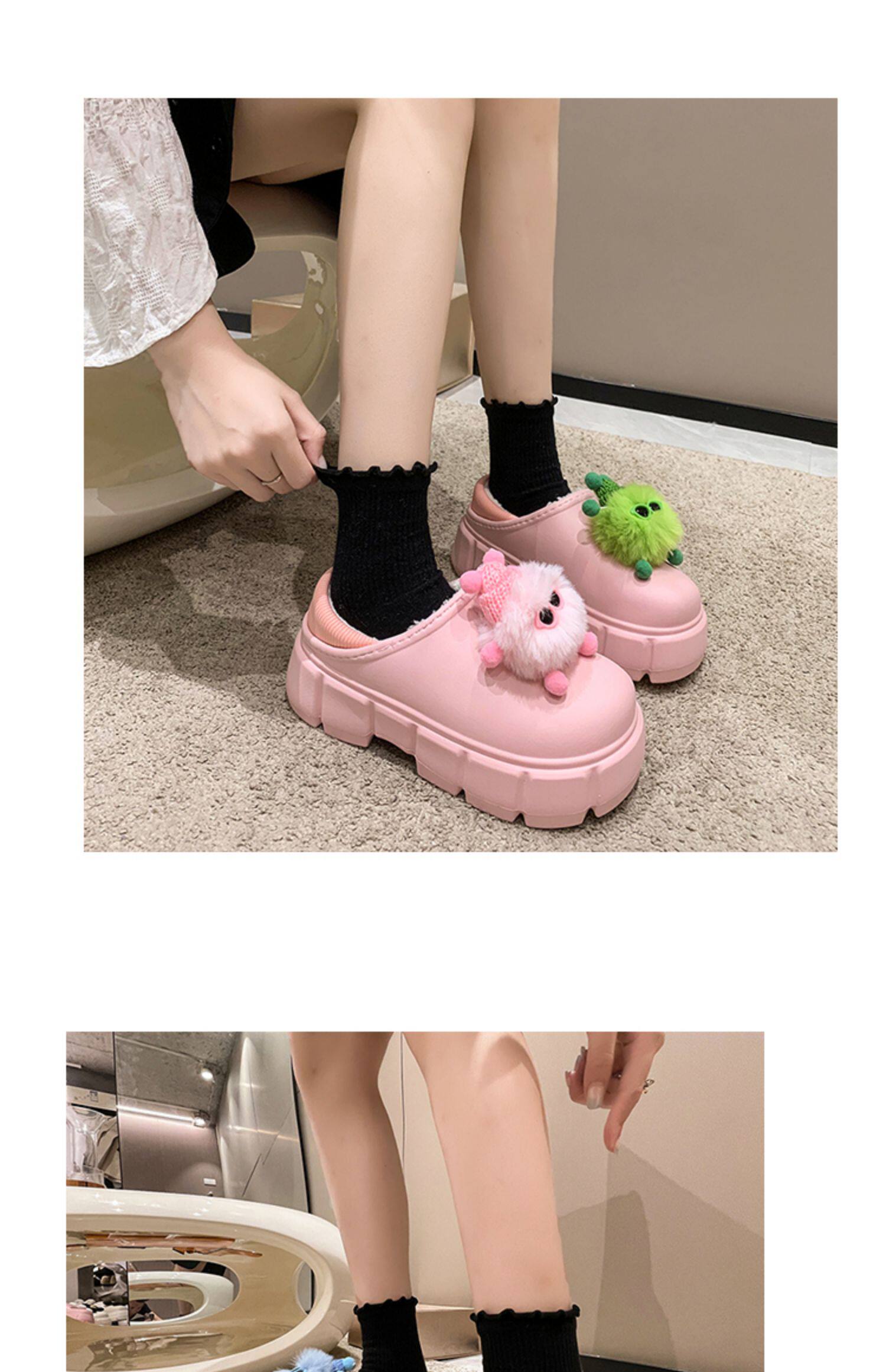 Тапочки на платформе, зимняя милая флисовая удерживающая тепло обувь, 2022
