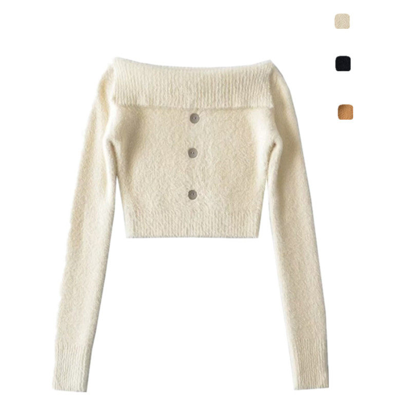 Ретро сексуальный приталенный трикотажный свитер, открытые плечи