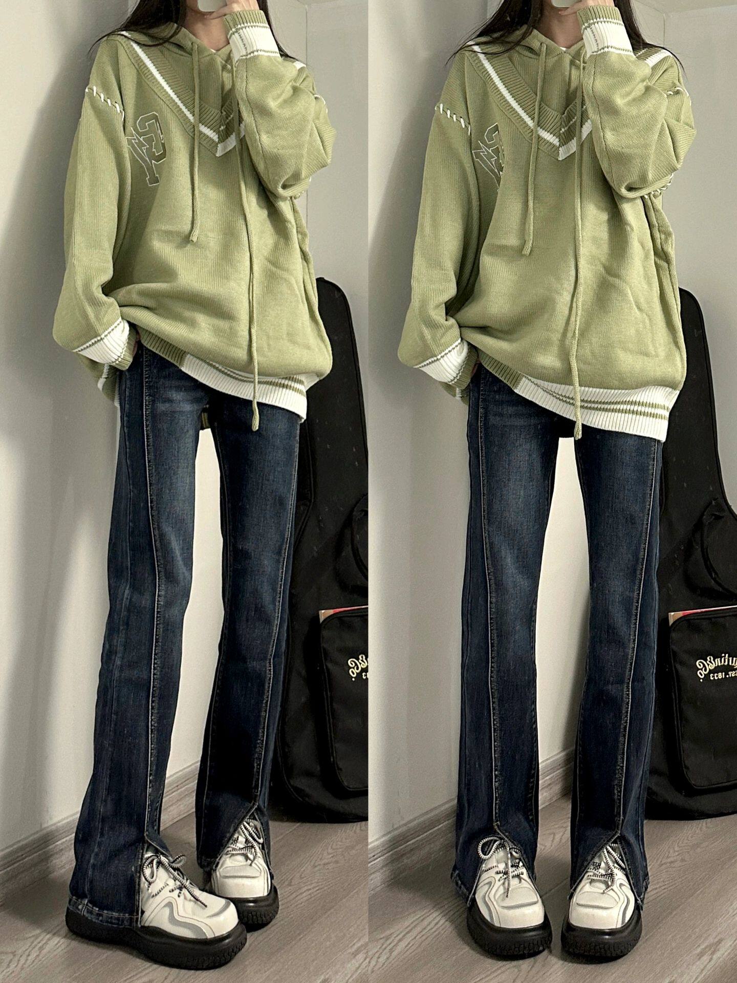 Приталенный мегафон, джинсы, весенние ретро штаны, большой размер, высокая талия
