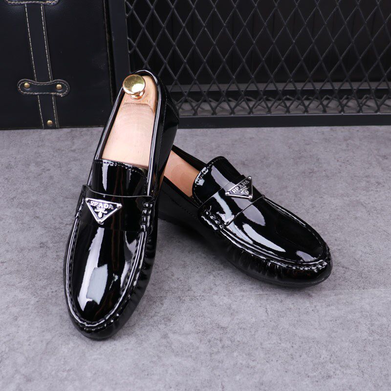 Повседневная туфли Doudou Мужская кусок кожа кожа британская ленивая туфли корейская тенденция яркая лапша