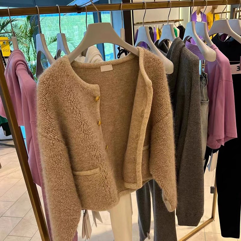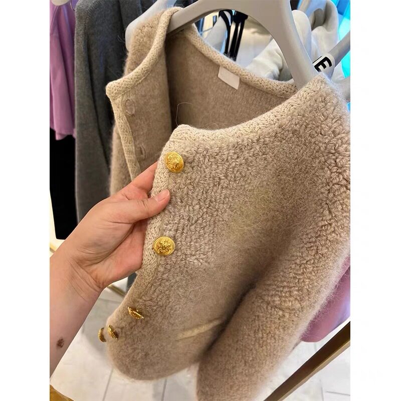 Демисезонный модный хаки бархатный кардиган, свитер, куртка, в стиле Шанель, изысканный стиль