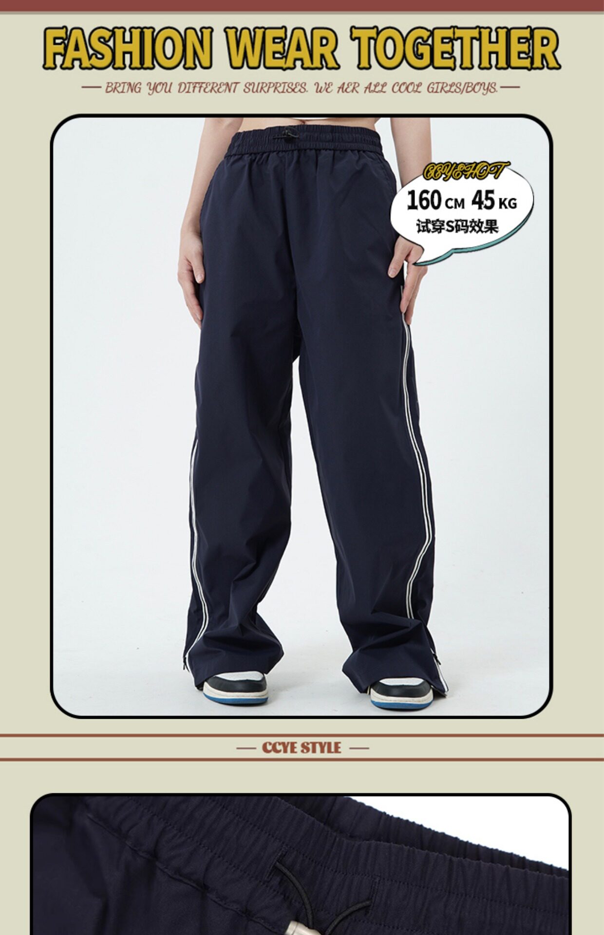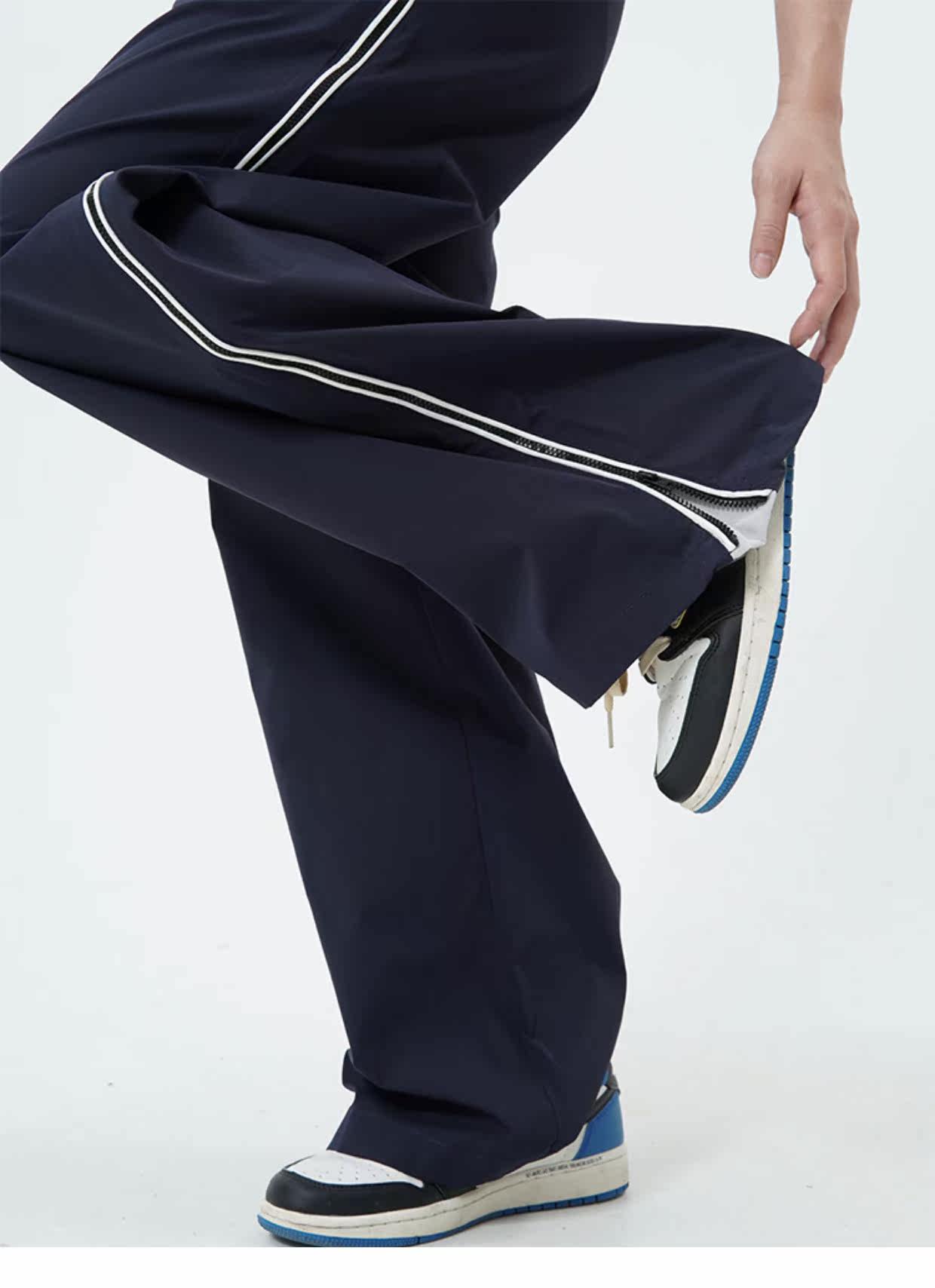 Tide, дизайнерские штаны подходит для мужчин и женщин, тренд сезона, в американском стиле, высокая талия, свободный прямой крой
