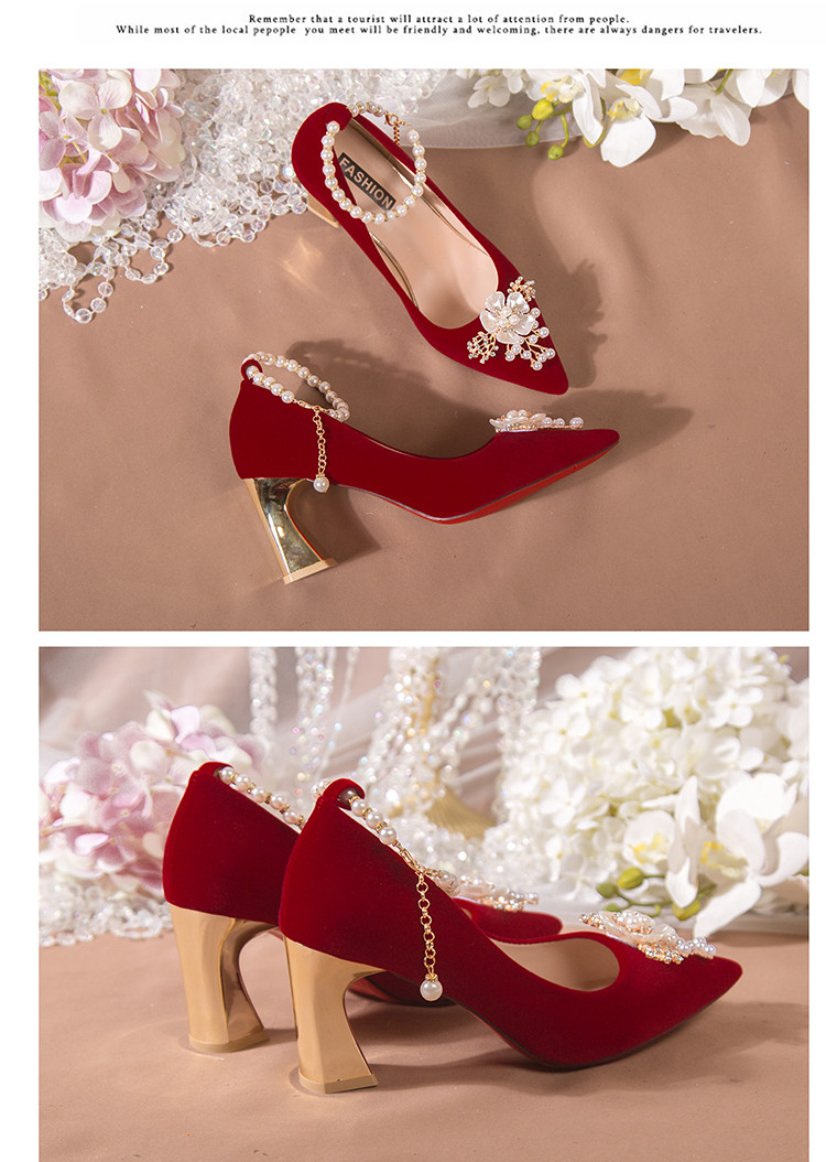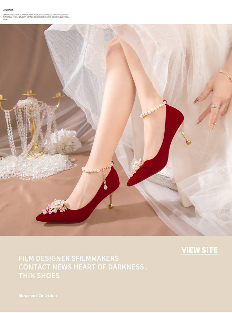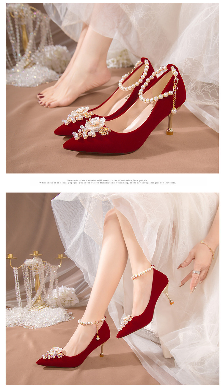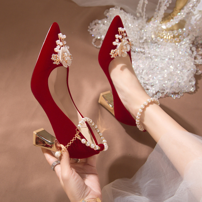 Свадебные туфли, красная обувь для невесты на высоком каблуке, против усталых ног, китайский стиль