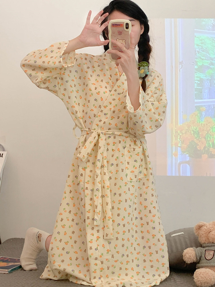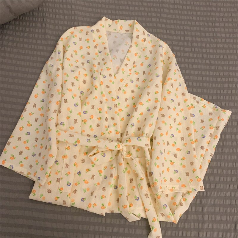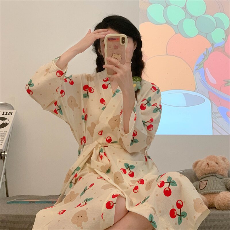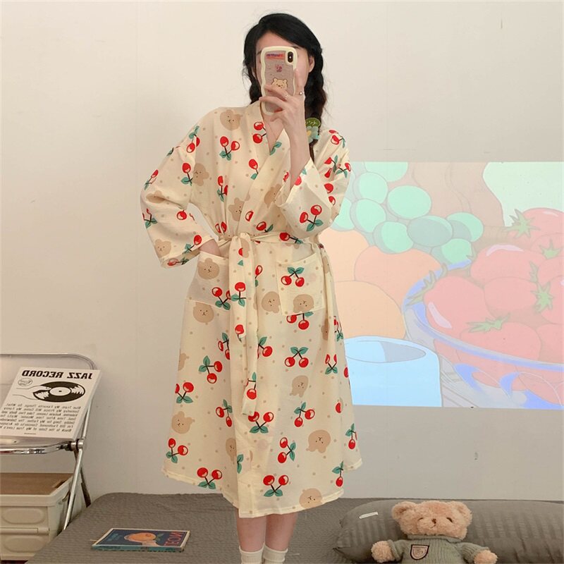 Японский осенний банный халат, пижама, тонкий длинный лонгслив, средней длины