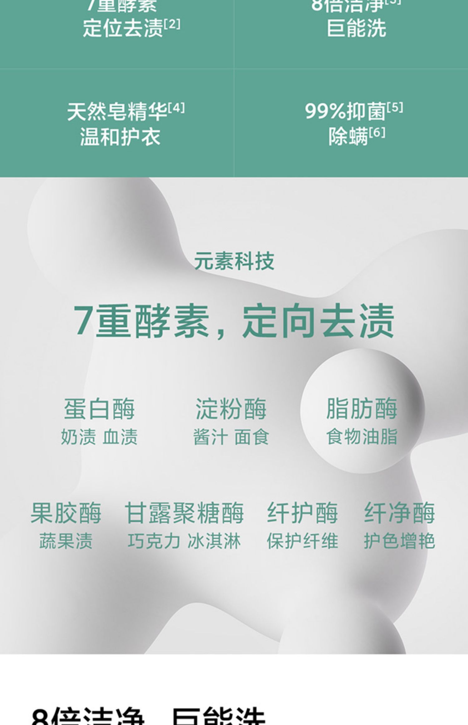 Официальный флагманский магазин Xiaomi ежедневно элементы гигантской банки вымывают и прачечную Ningzhu 7 Тяжелый фермент 99%бактериостатические клещи 240G