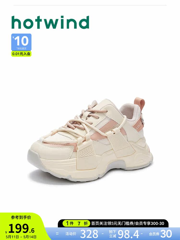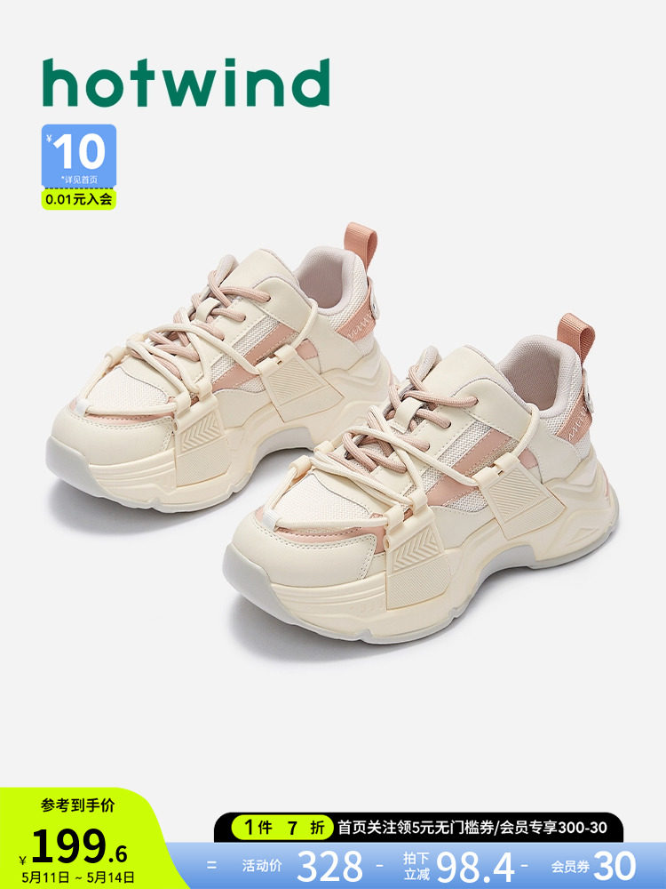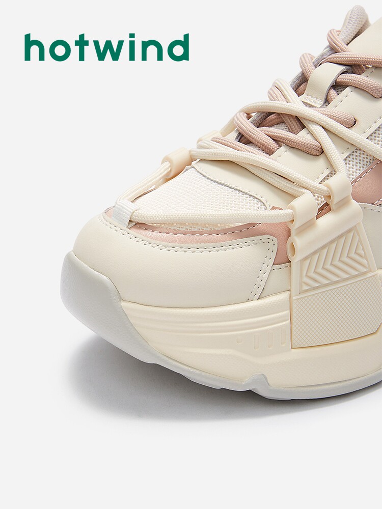 Hot Wind 2023, весенняя новая женская модная спортивная и повседневная обувь на шнуровке, универсальные туфли для папы на платформе с цветными блоками
