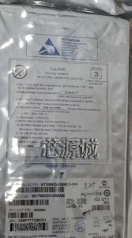 Оригинальный ATXMEGA384C3-MH VQFN64 Microcontroller 8/16 бит 32 МГц 384 КБ вспышка