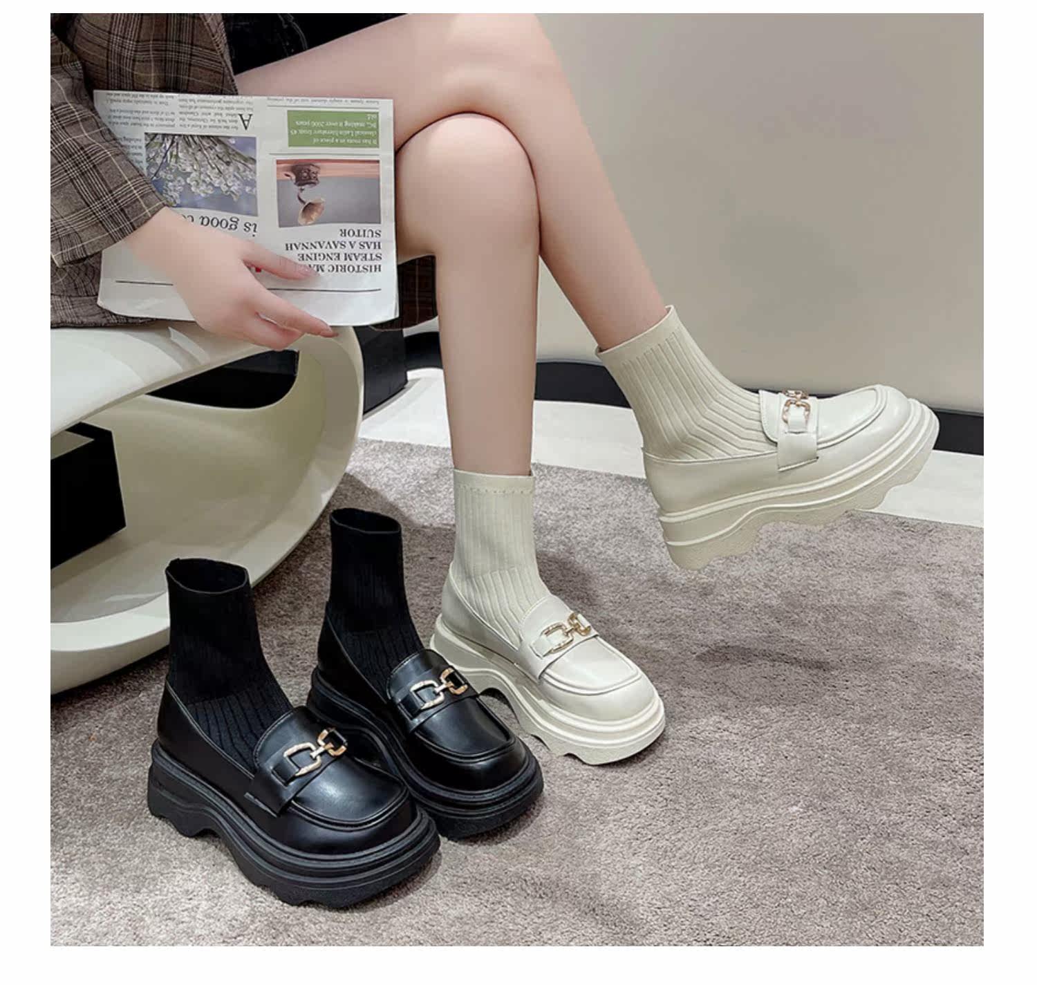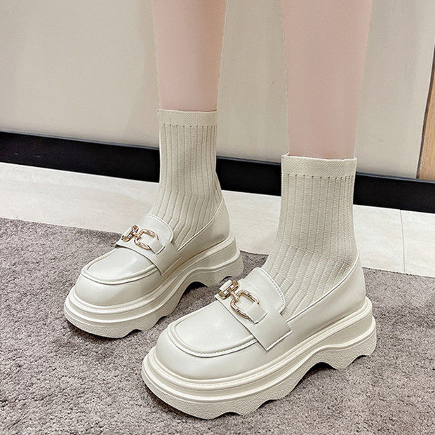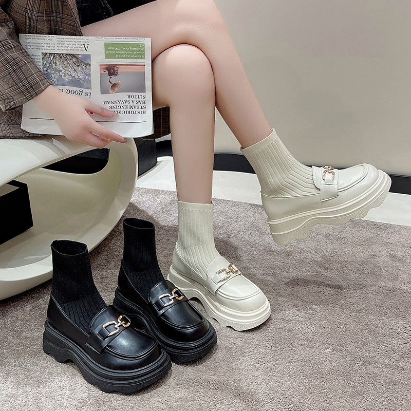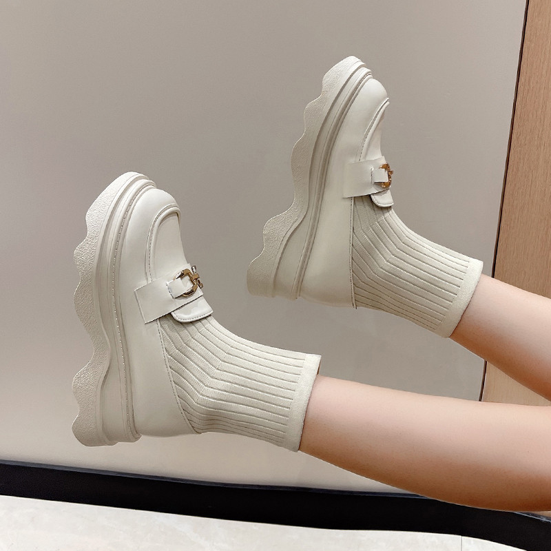Демисезонные универсальные белые эластичные короткие сапоги на платформе, в стиле Шанель, коллекция 2022, подходит для подростков