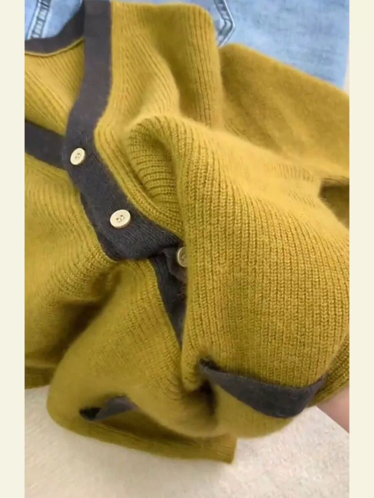 Демисезонный бархатный желтый кардиган, свитер, в корейском стиле, в стиле Шанель