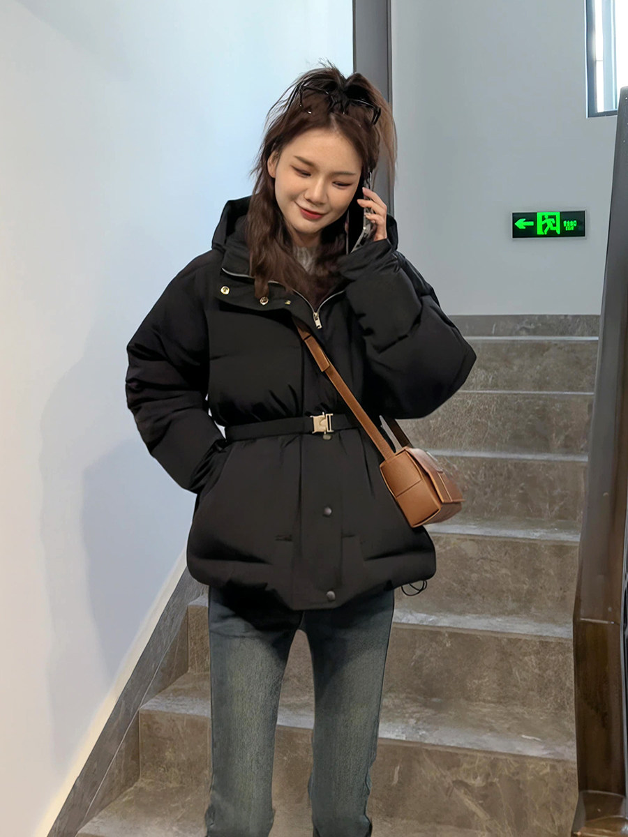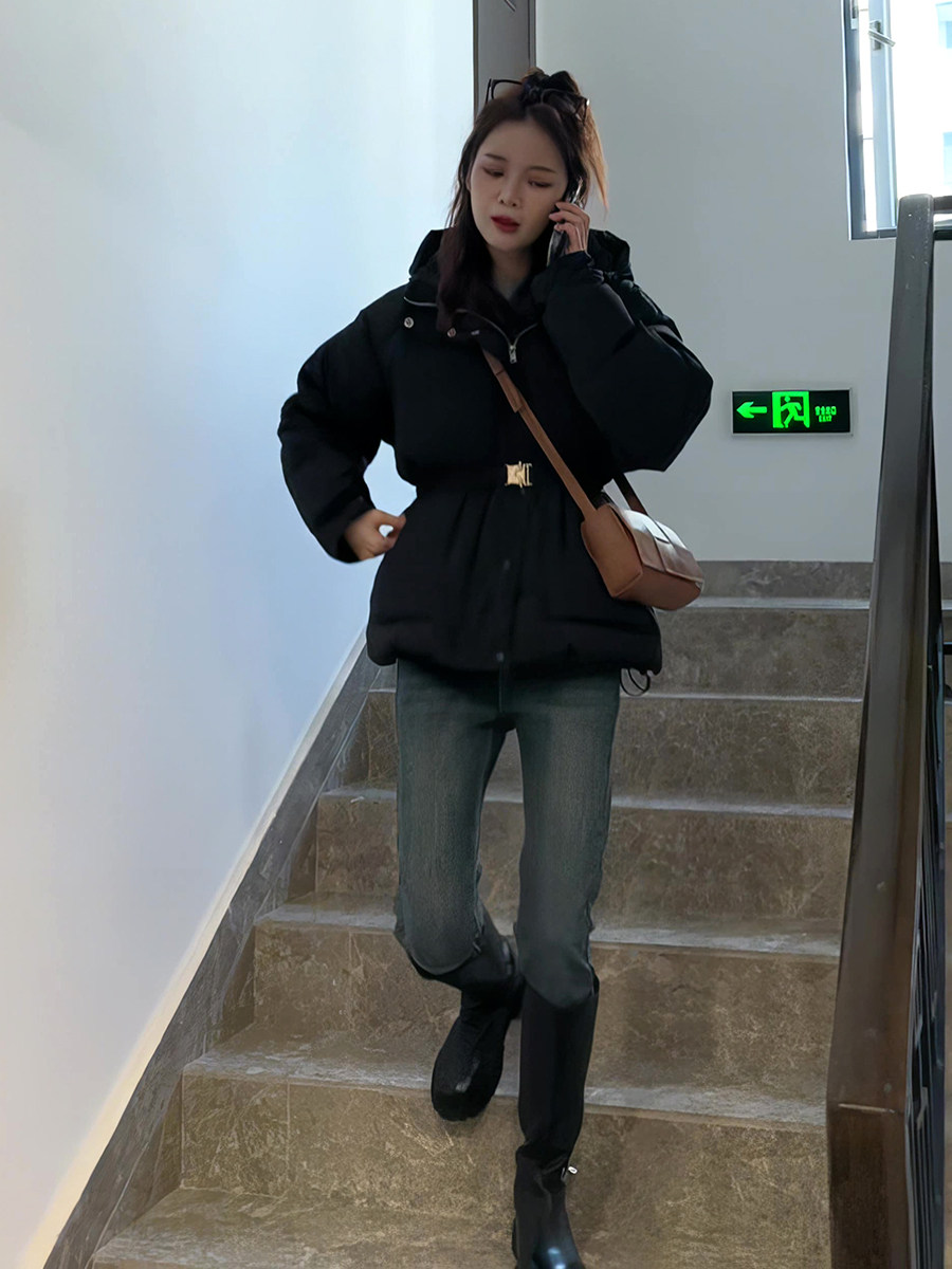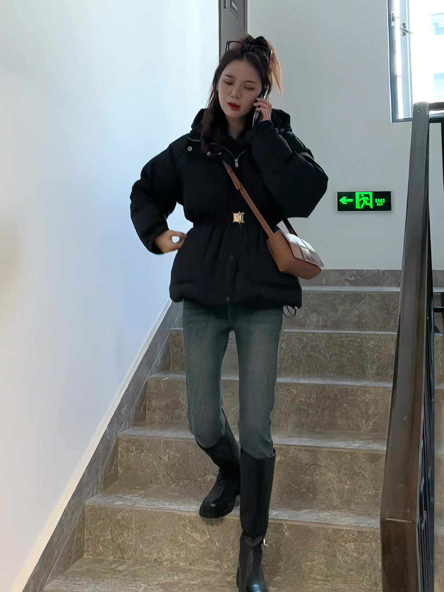 Пуховик с пухом, зимний черный короткий корсет, модная куртка, 2023, подходит для подростков, увеличенная толщина, в корейском стиле, свободный крой