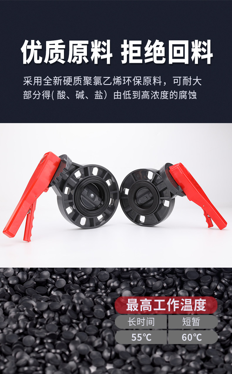 Ручка UPVC Ручка бабочки клапана, чтобы зажать мягкий секретный герметизирующий фториновый турбинный клапан, давая трубы водопроводной трубы 90 110 160