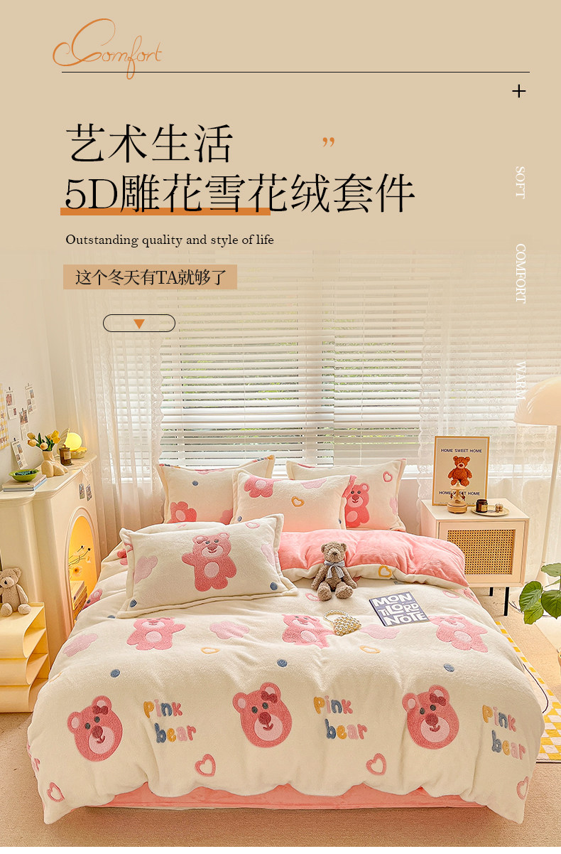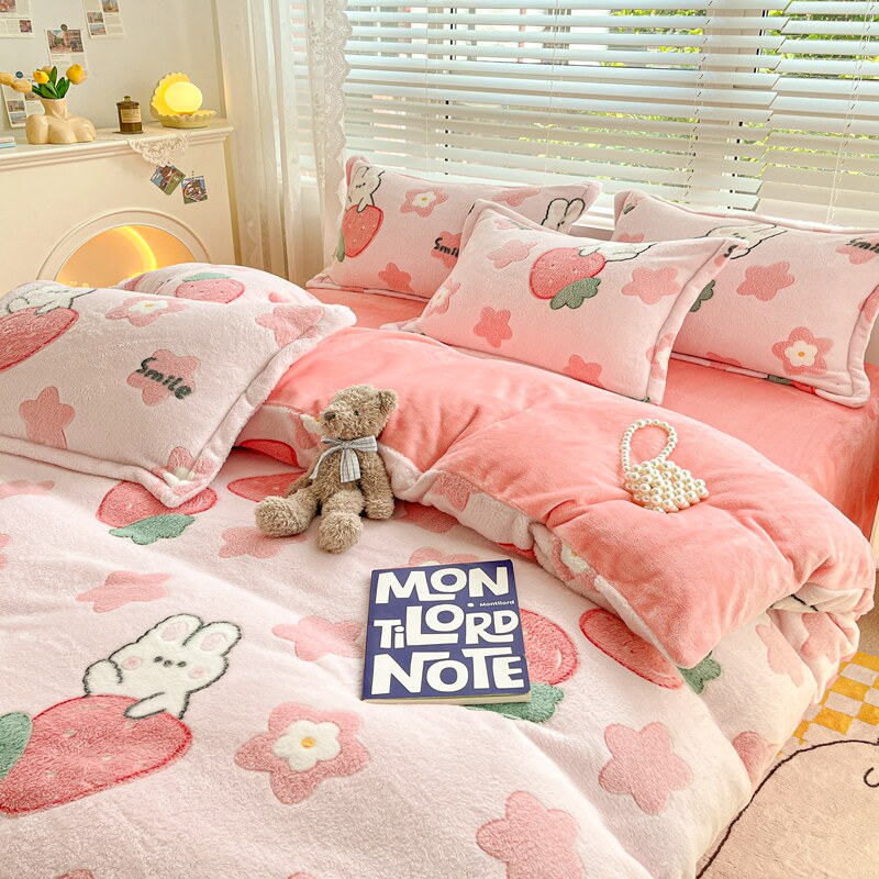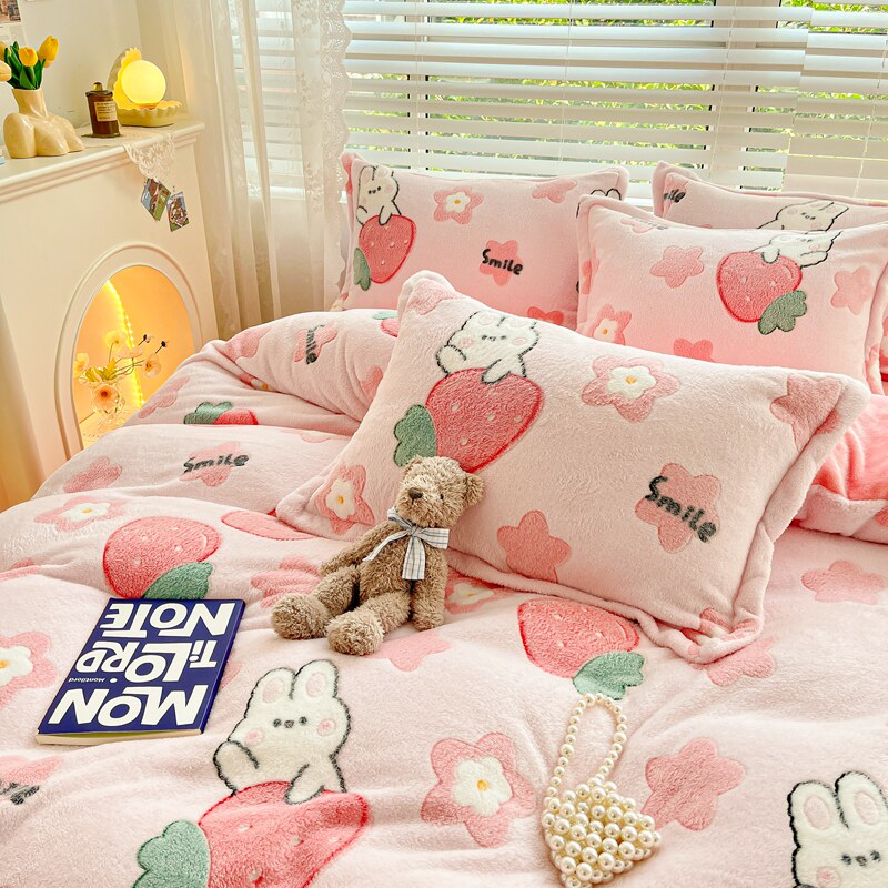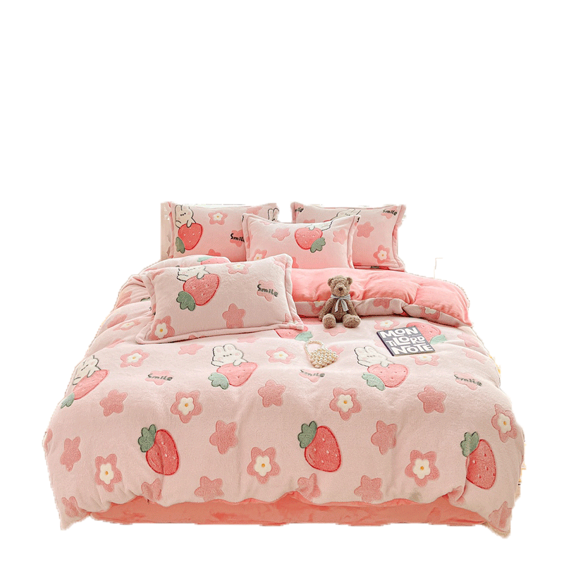 Коралловый зимний комплект, фланелевое покрывало, флисовая простыня, пододеяльник, 4 предмета, 3 предмета