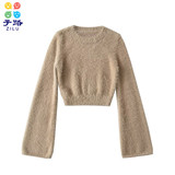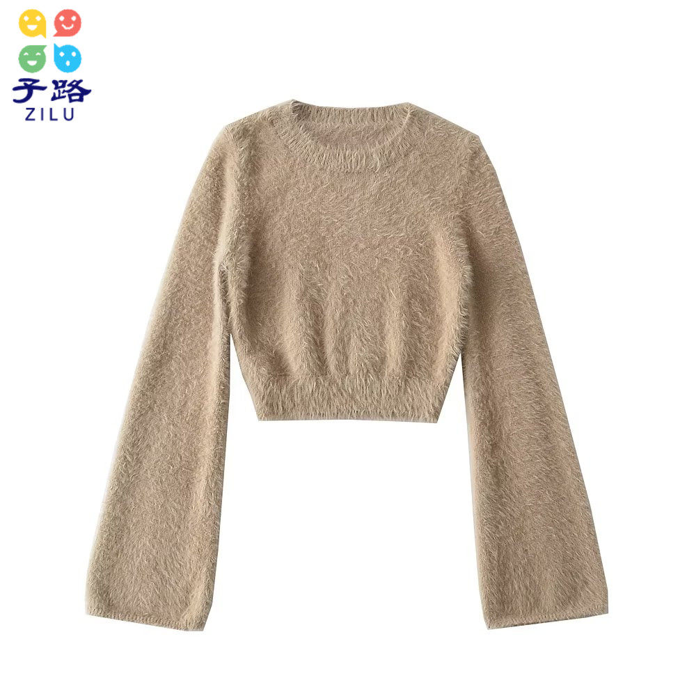Приталенный короткий мегафон, трикотажный лонгслив, свитер, европейский стиль