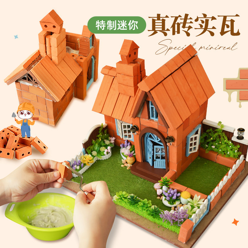 Конструктор дома, игрушка, домик с глиняной черепицей, вилла, DIY