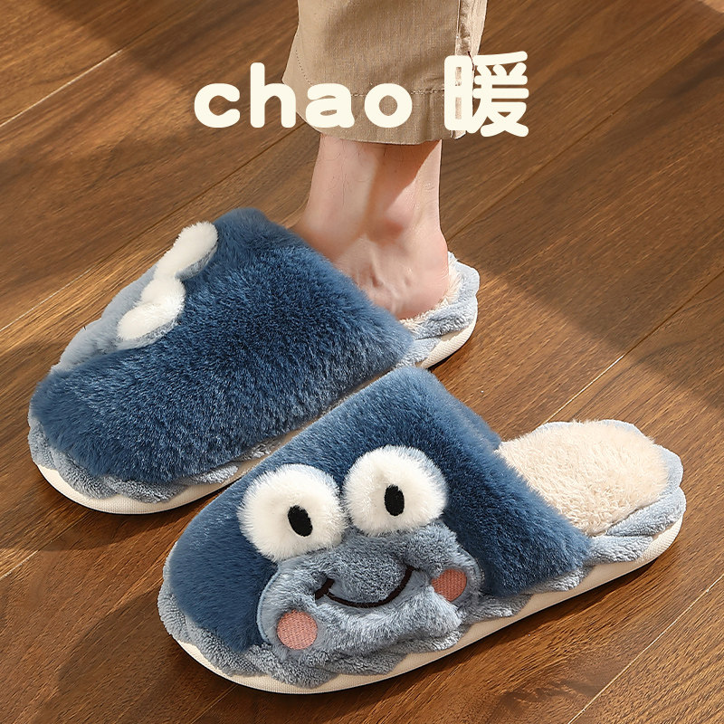 Зимние мужские нескользящие удерживающие тепло мультяшные демисезонные тапочки на платформе