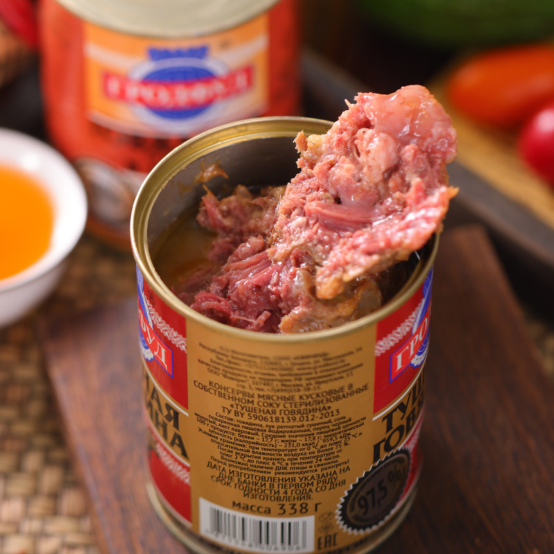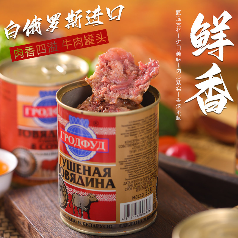 Белорусные консервированные говядистые банки фаст -фуд, ветчина, тушеная свинина, пикник для кемпинга и овощная еда