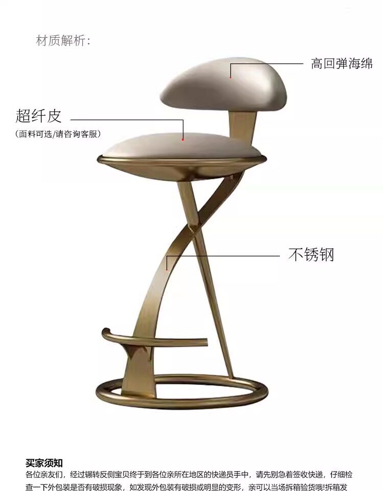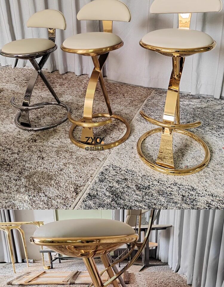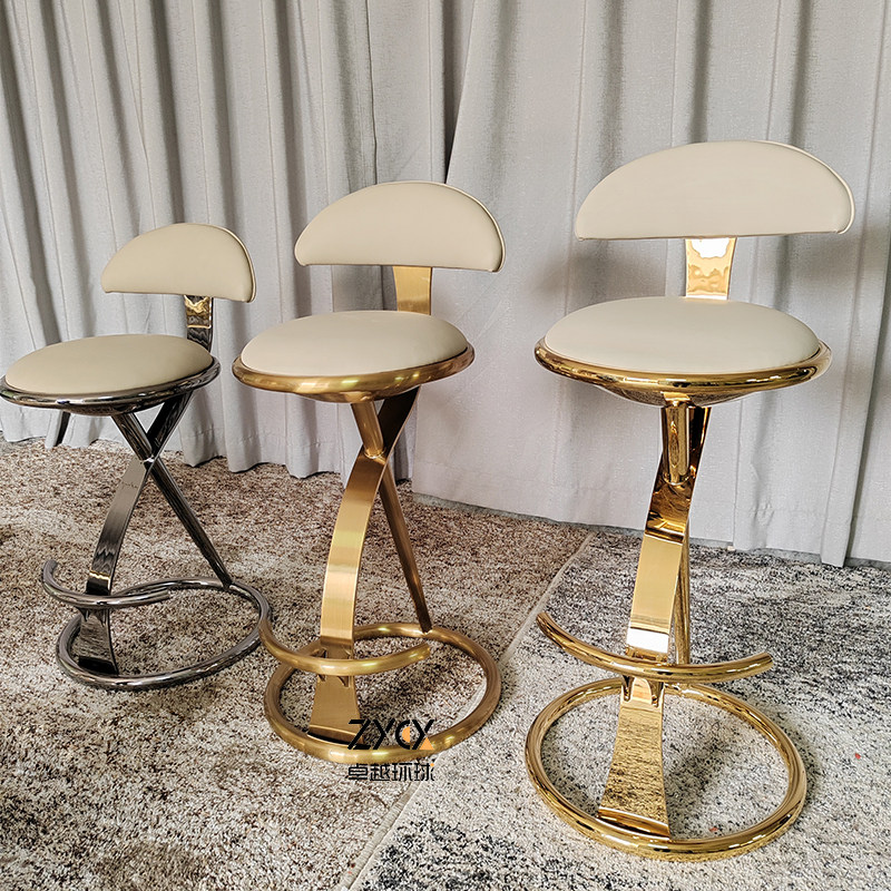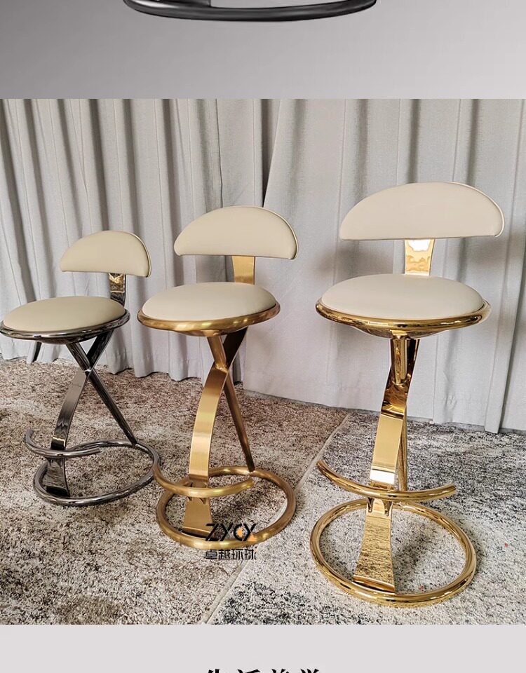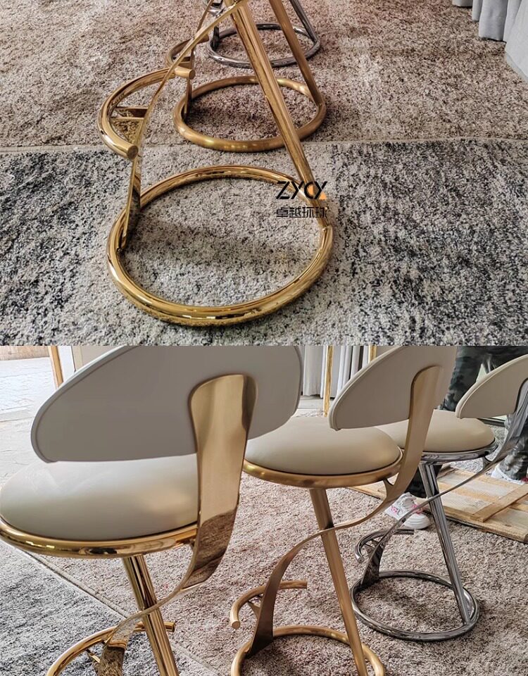 Итальянский легкий роскошный бар стул из нержавеющей стали креативная сеть красная передняя стул Вилла Home Island Кожаный кожаный стул металл
