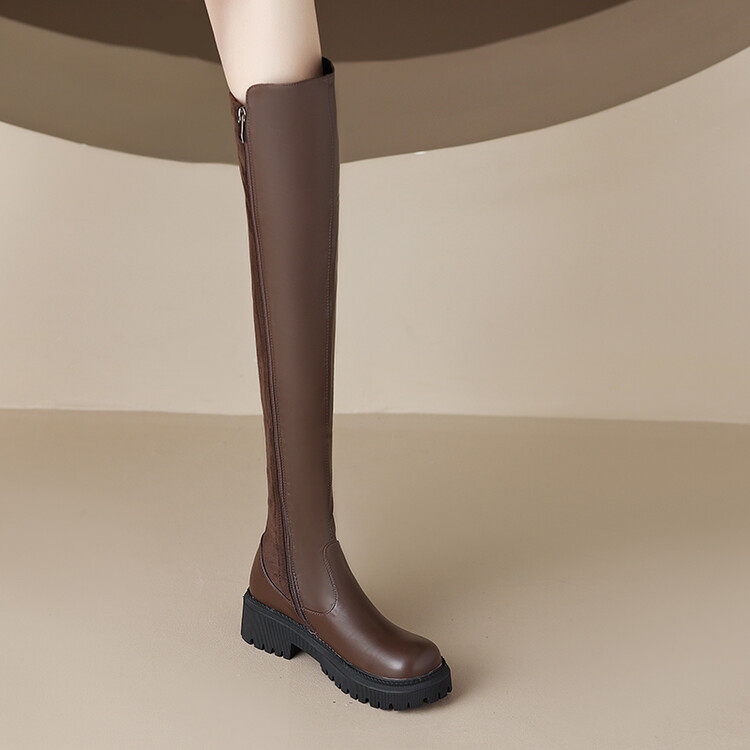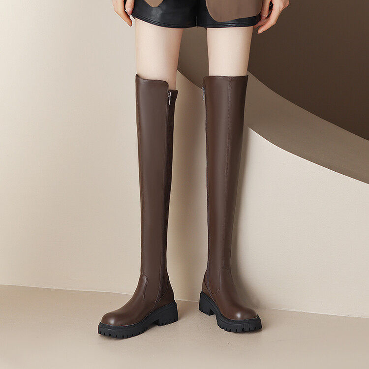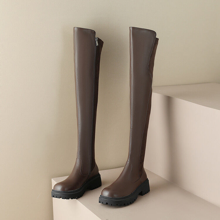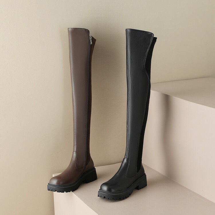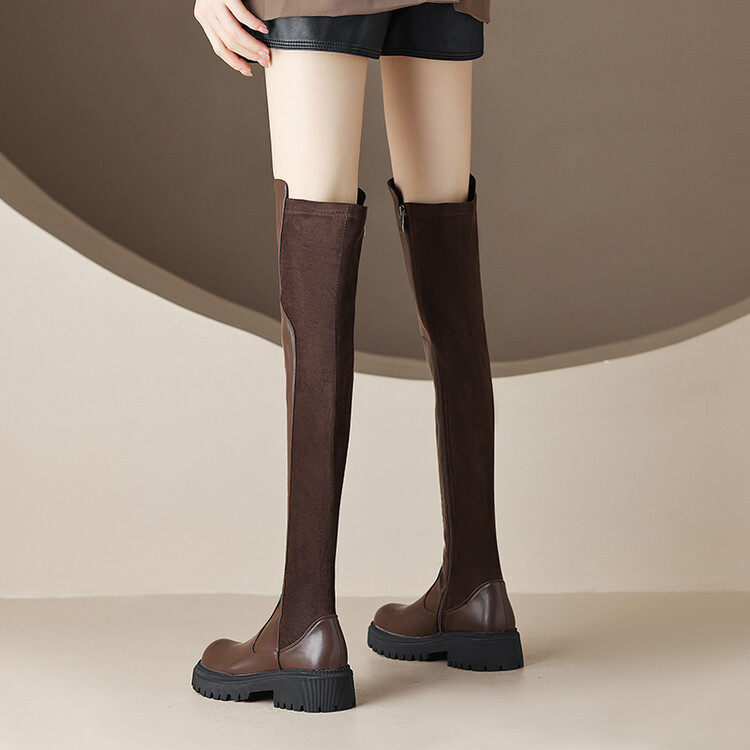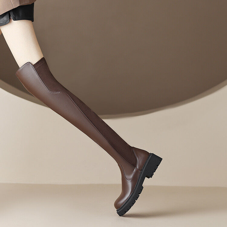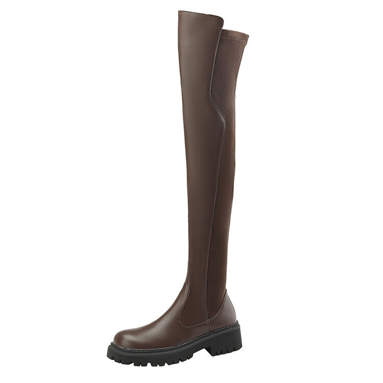 Коричневые эластичные демисезонные высокие сапоги, коллекция 2022, по фигуре