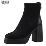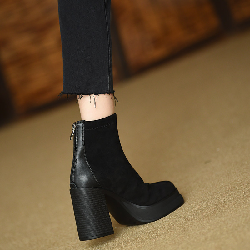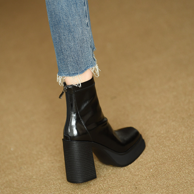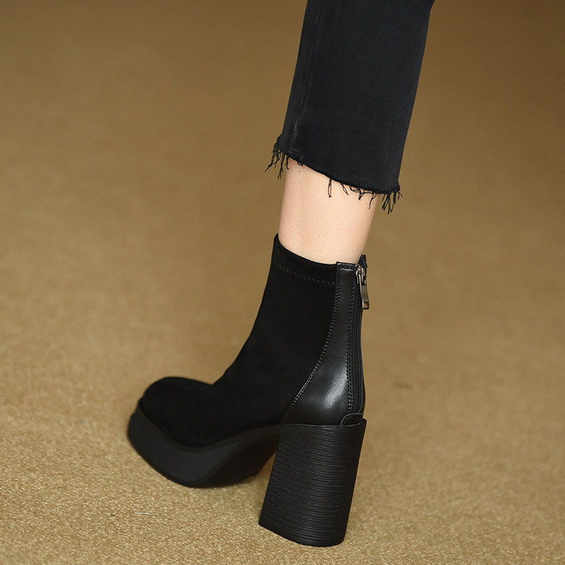 Эластичные демисезонные короткие сапоги, черные туфли на высоком каблуке, ботинки