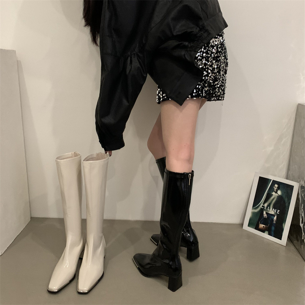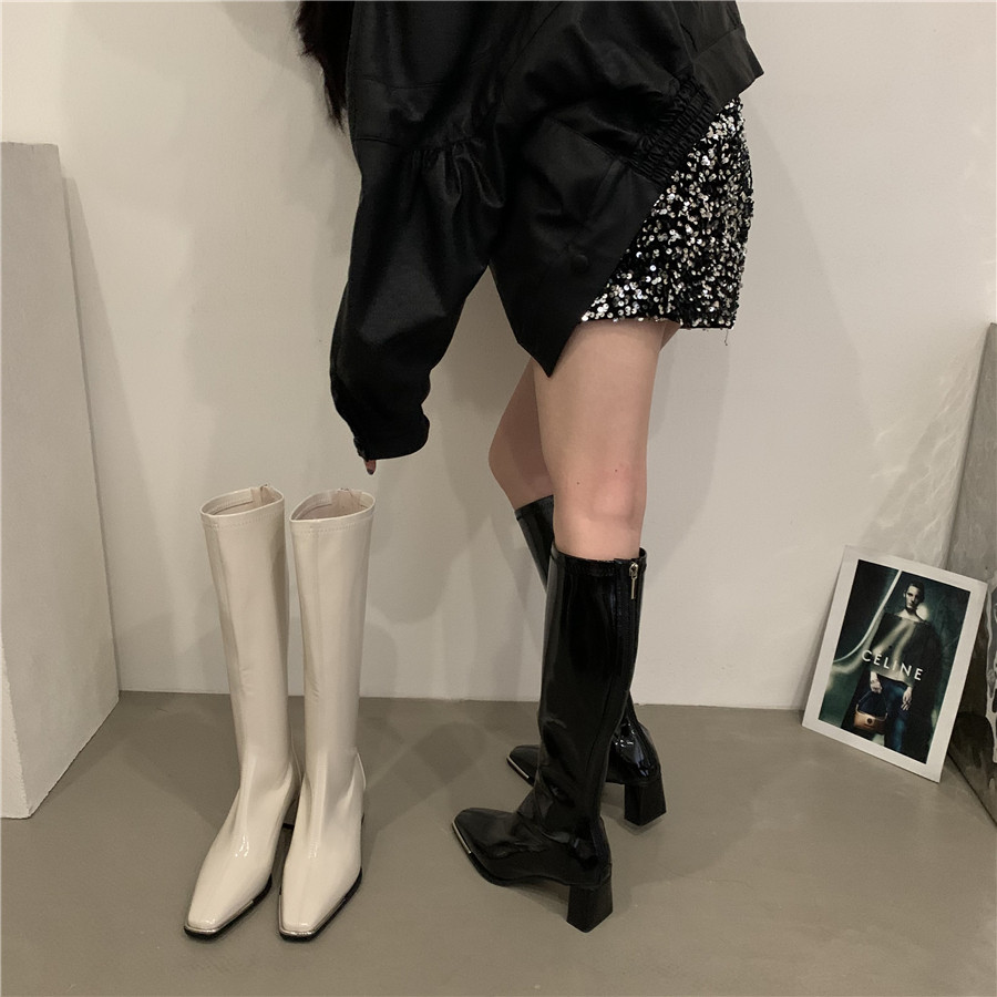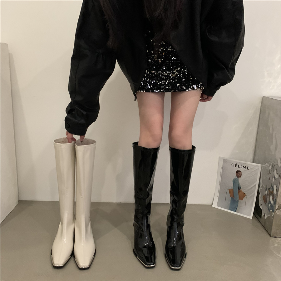 Зимние белые высокие весенние высокие сапоги, в корейском стиле, по фигуре