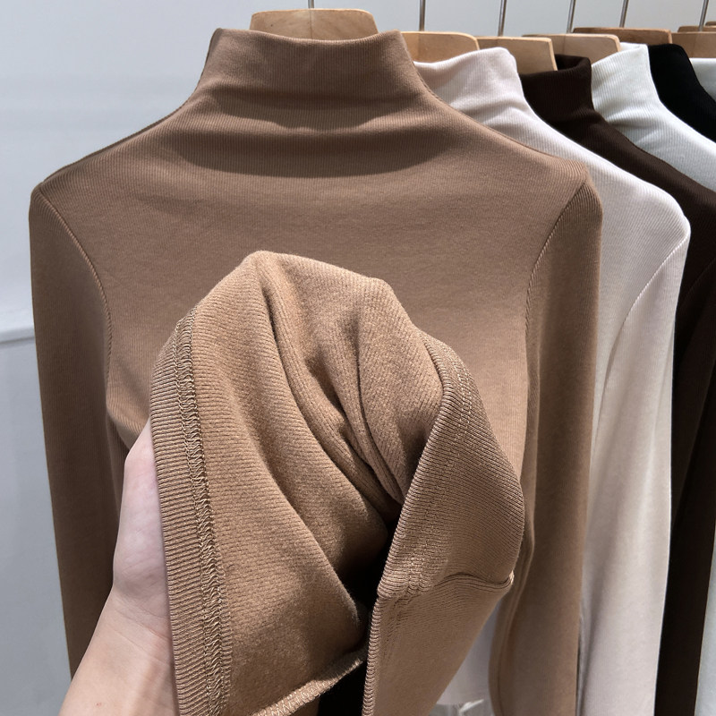 Утепленный базовый приятный телу белый лонгслив, зимнее термобелье, высокий воротник