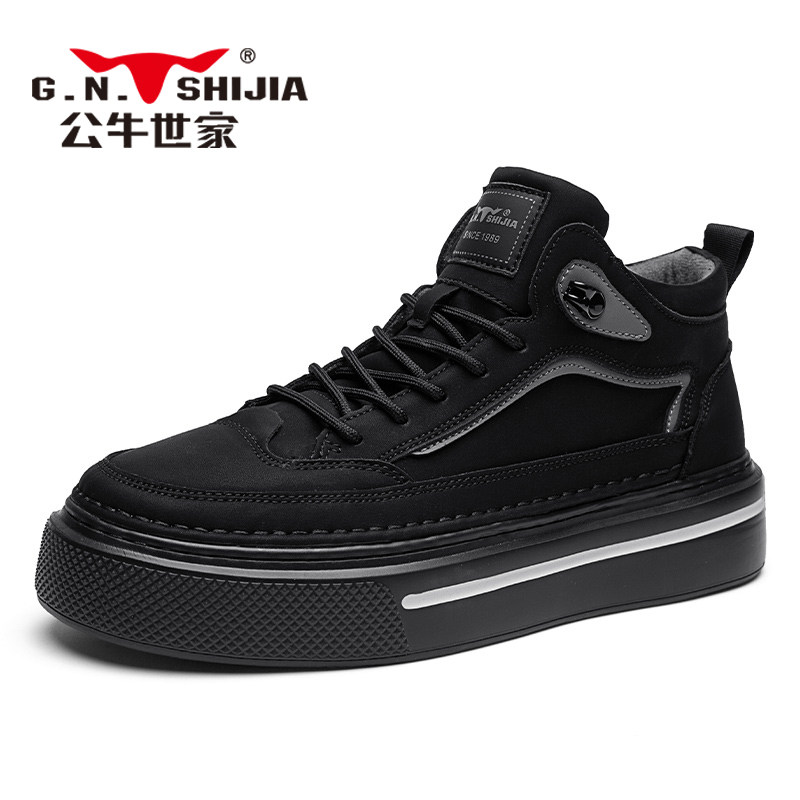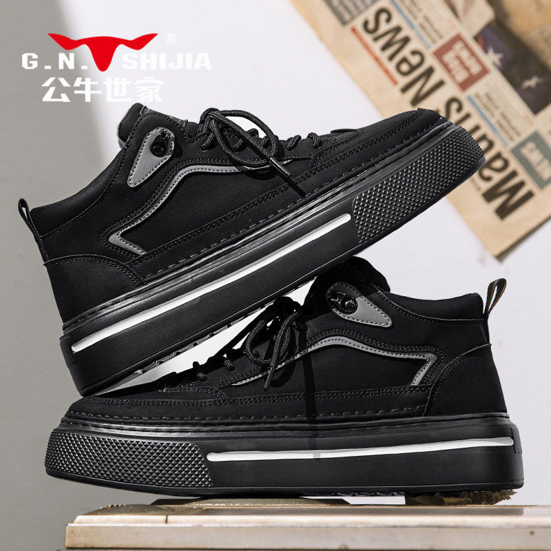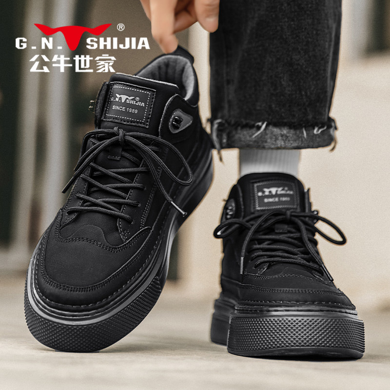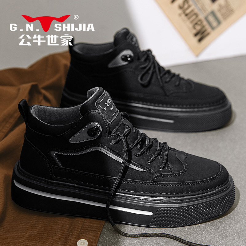 Высокая весенняя обувь, черные кроссовки на платформе для отдыха для кожаной обуви, из натуральной кожи
