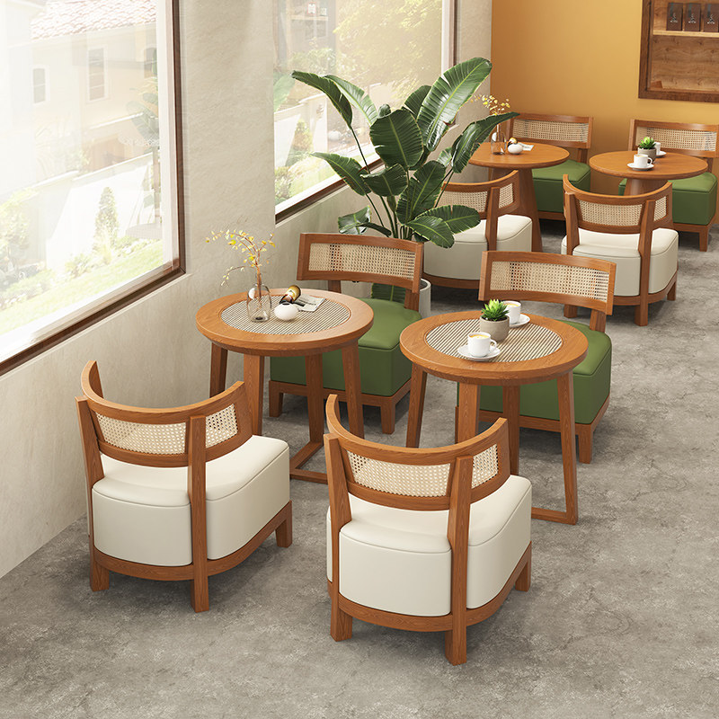 Стол переговоров с твердым древесиной и стул Комбинированные дизайнерские кафе -магазин Milk Tea Shop Редактор ротан