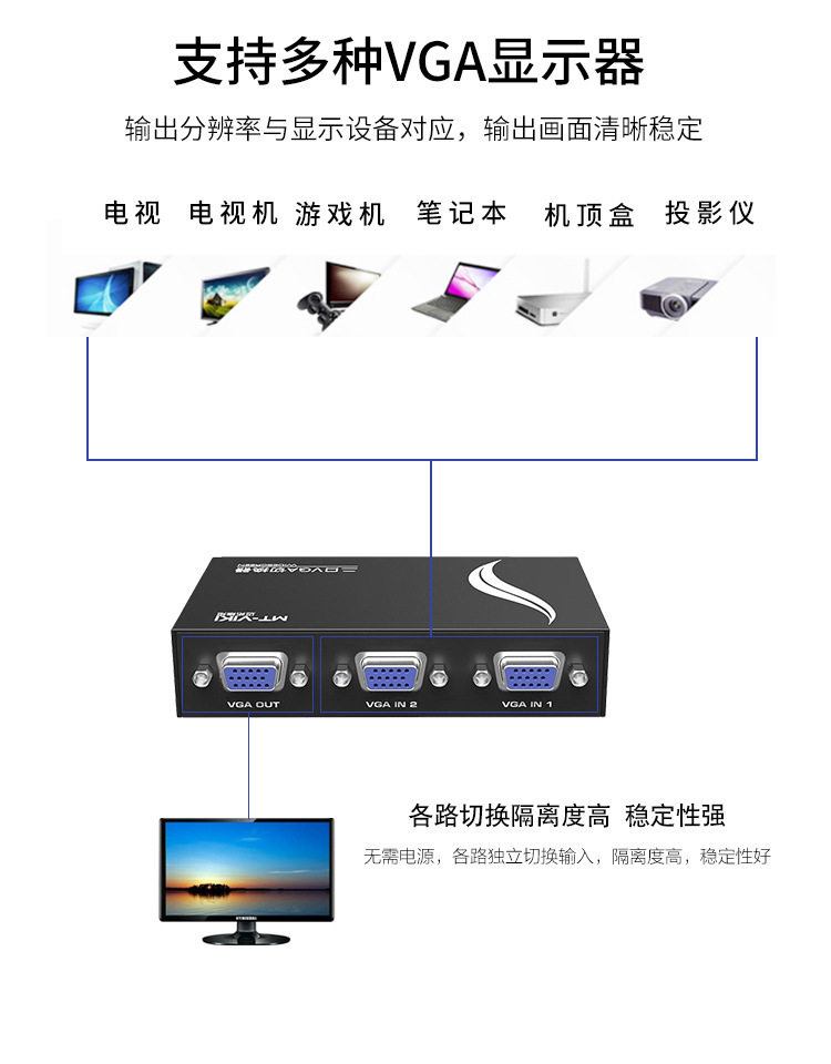 - VGA Switch 2 Port поддерживает широкий экран