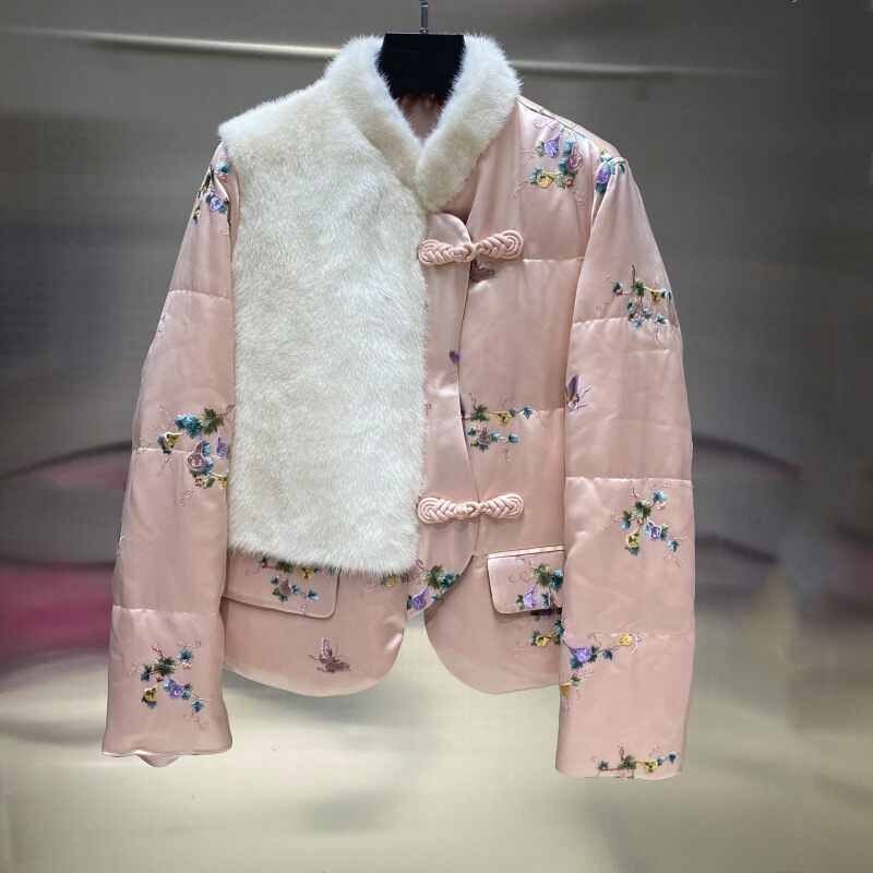 Зимний пуховик, куртка, европейский стиль, 2022, с вышивкой