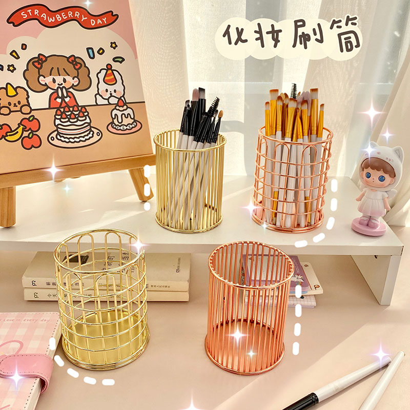 Кисть, система хранения, золотой настольный держатель для ручек с розой в составе, база под макияж
