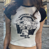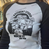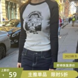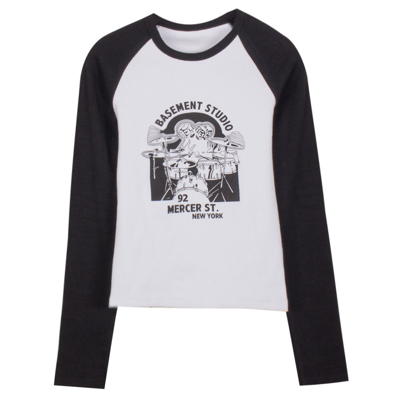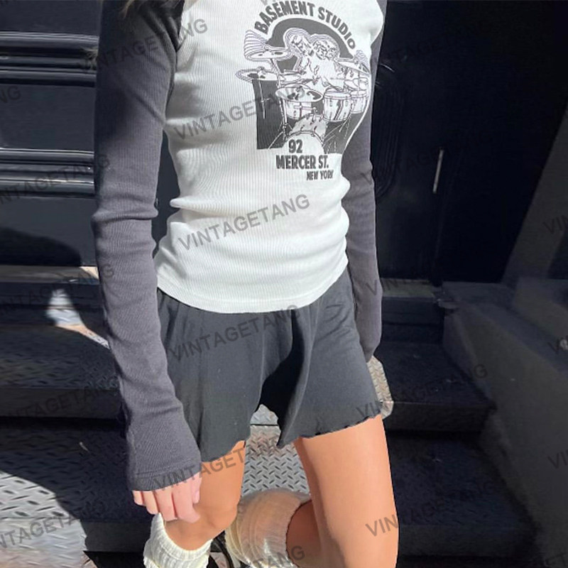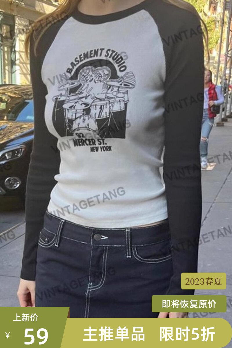 Vintagetang Американский ретро -ретро -контрастный плечевой рукав с длинным