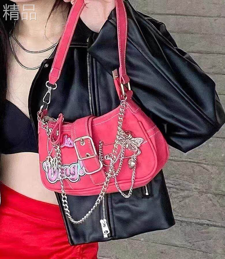Оригинальная y2k сладкая классная женщина, ниша, ниша миллениум, острая девушка, пересекающая руки, поднимая наррацкую розовую сладкую сумку
