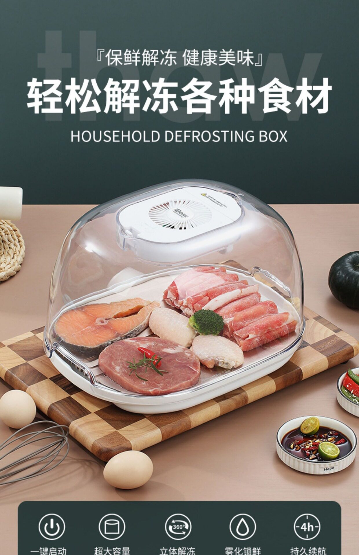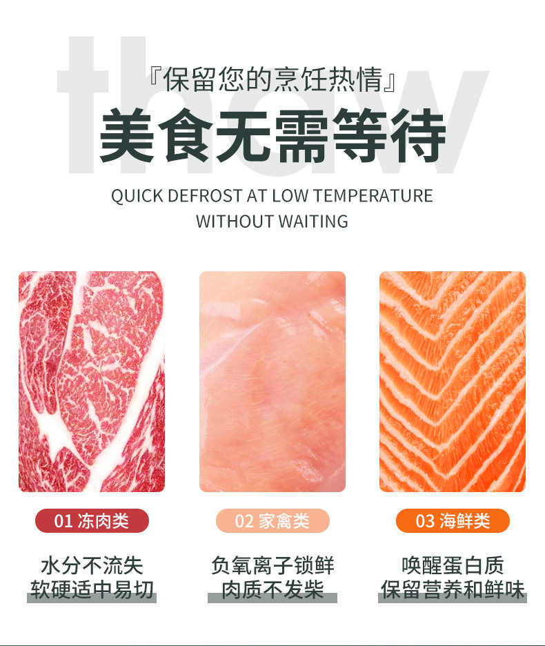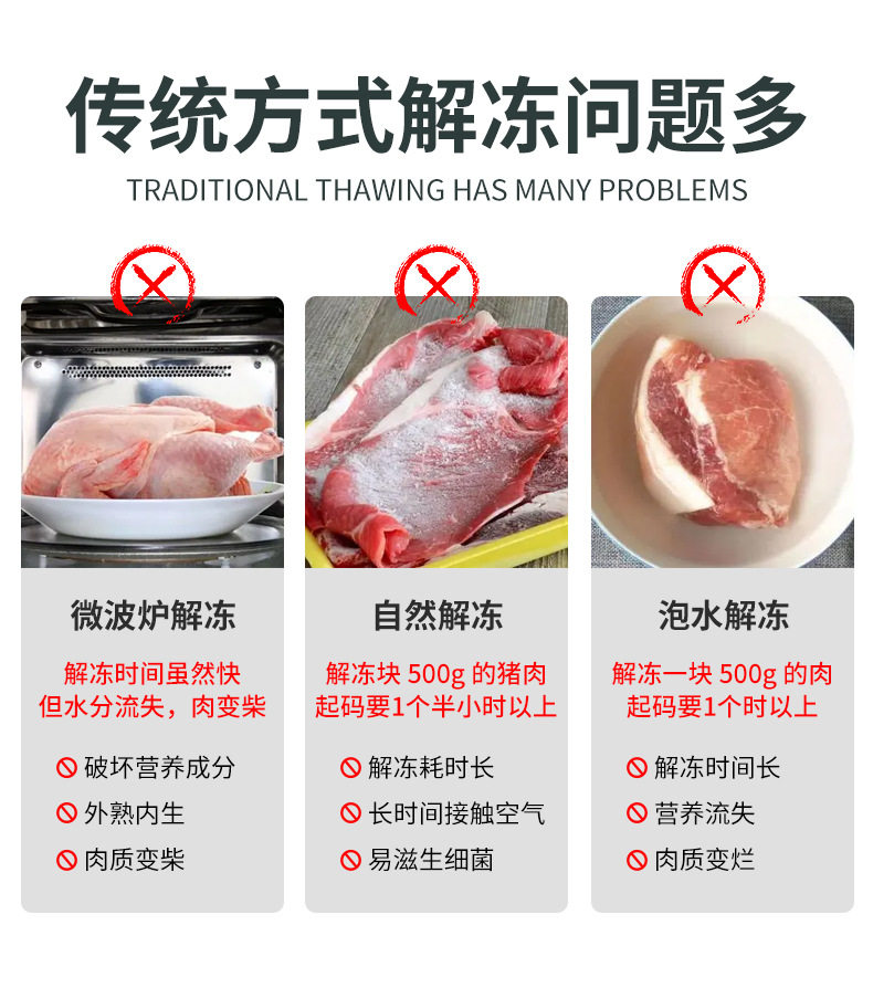 Оттаивая артефактная мебель Jieye Beef Стейк из оттаивания мяса, свежего и антибактериального, антибактериального и быстрого оттаивания дисков.