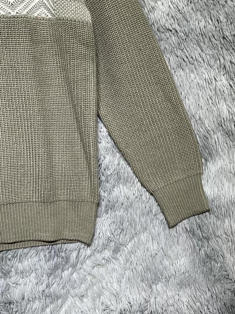 Демисезонный двухцветный шерстяной трикотажный свитер с круглым воротником, оверсайз