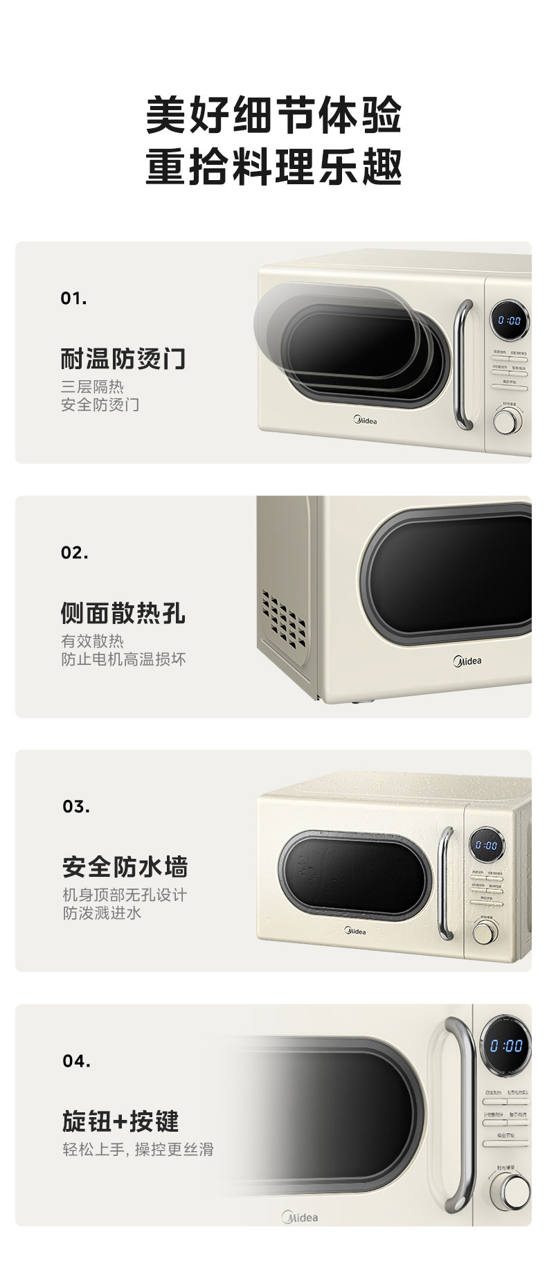 Дом Мидиа маленький мини -ретро -ретро -микроволновый печь молоко молоко бело